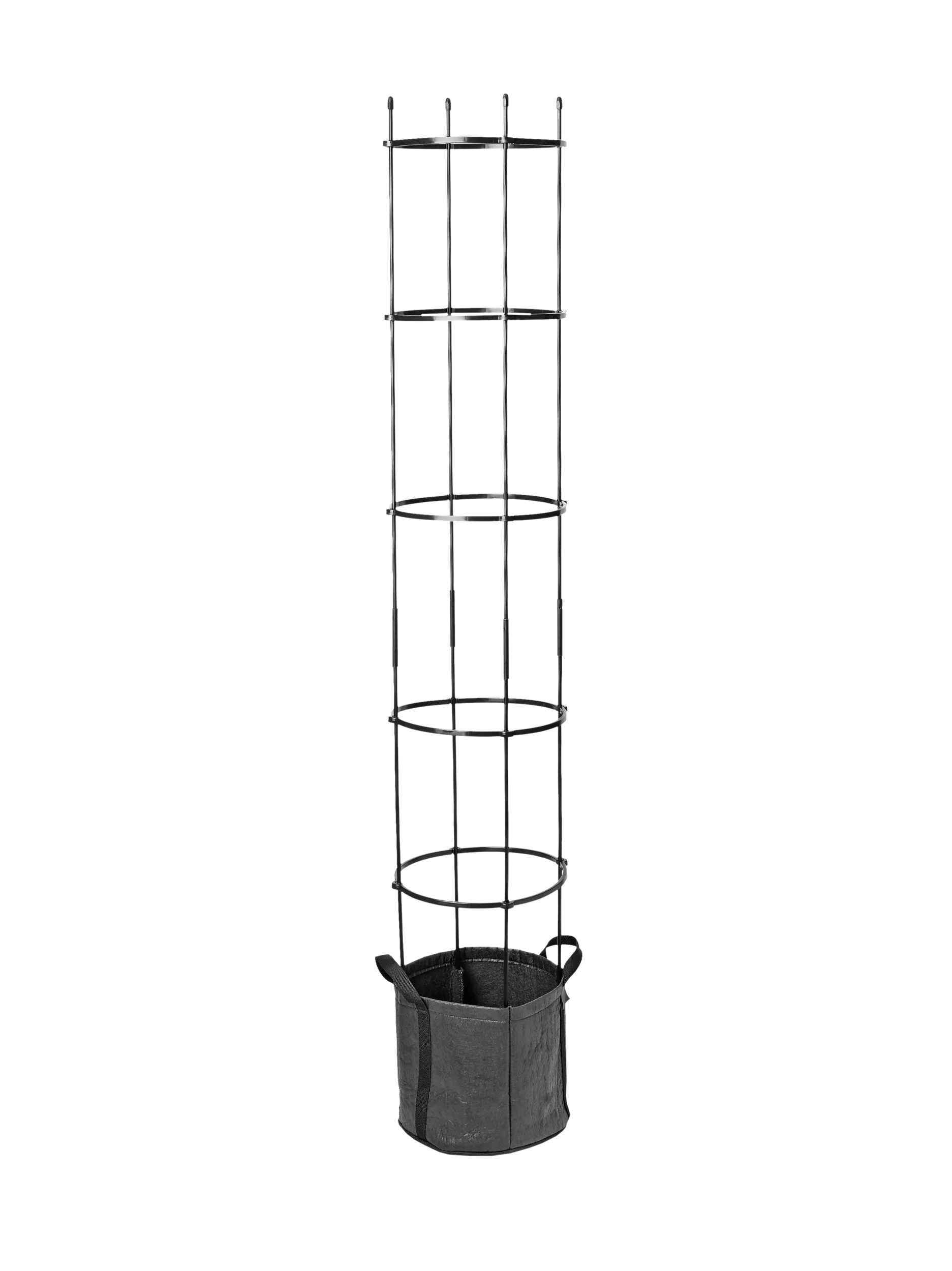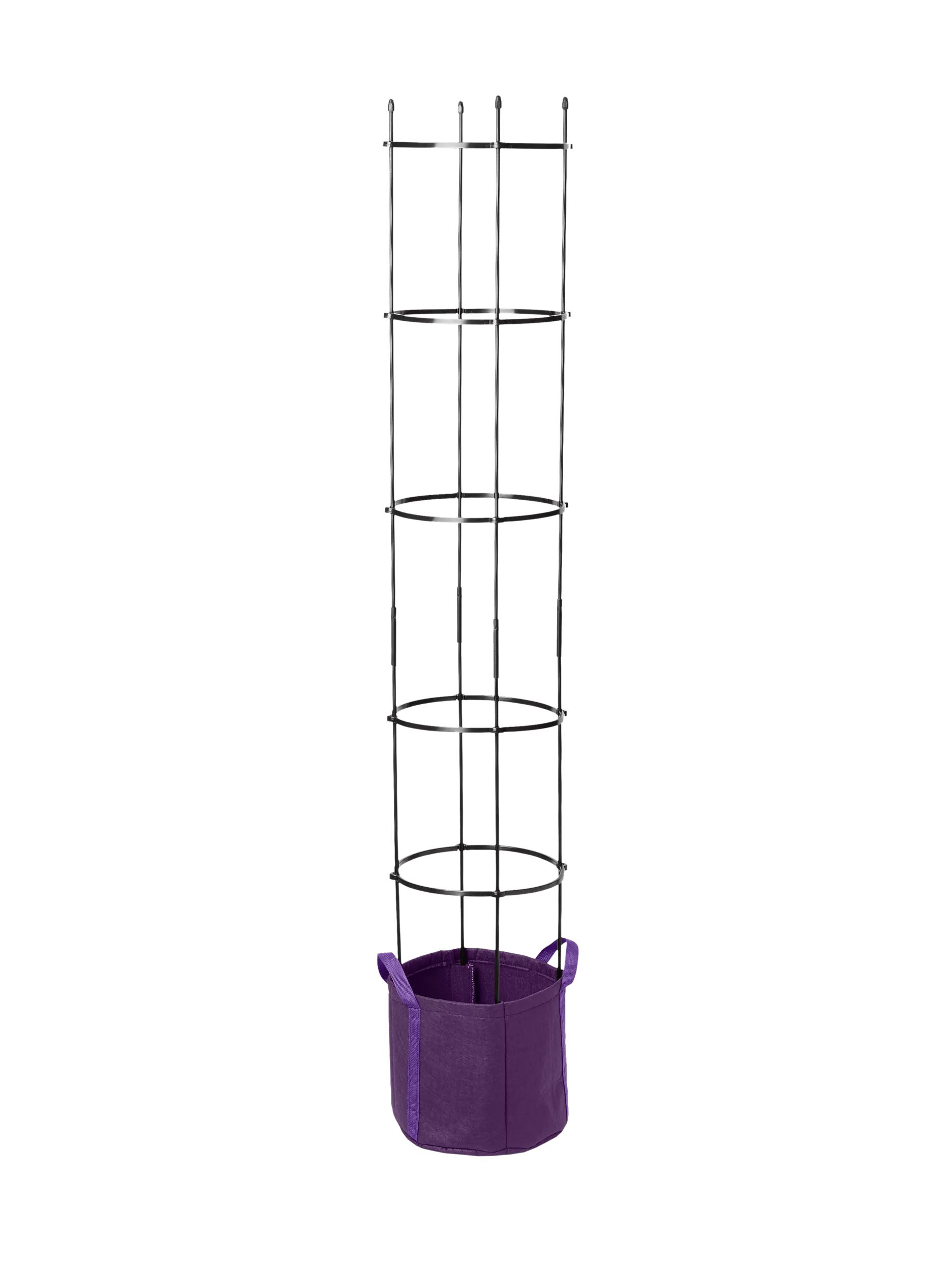 Grow delicious tomatoes in just one square foot of space! Our new Gardener’s Best® Tomato Grow Bag uses less planting mix, and top-to-bottom nylon handles make it easy to move. It's made from patented fabric that air-prunes roots for stronger, healthier plants. The fabric also aerates soil, prevents heat build-up and allows excess water to drain away. The integrated Power Tower® cage is a generous 5' high, with five height-adjustable rings to provide sturdy support. Double-sewn channels in the Grow Bag anchor the cage securely in place. Grow Bag folds for storage. Reusable year after year.