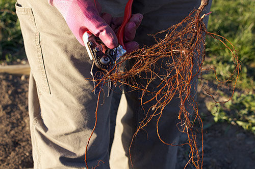 4. Trim broken and extra-long roots with sharp, clean hand pruners.