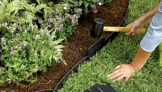 Pound-In Edging is the quickest, easiest system you'll find for defining an edge around your flower beds or garden. Simply pound each interlocking piece into the ground with a rubber mallet; in most soils there's no need for cutting, trenching or tearing up sod. To turn a corner, just bend the sections to form the angle you need.
