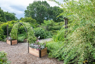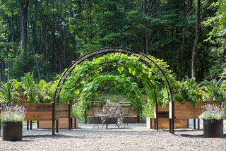 Our original Arch Trellis offerings fit seamlessly into the corners of our Elevated Planter Boxes. Place over the top to maximize growing space or between planters to create a stunning walk-through archway.
