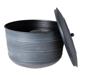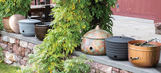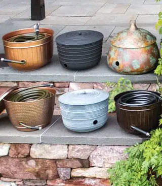 Made from long lasting powder-coated steel in an understated greywash finish, this generously-sized hose pot can hold 100 feet of hose, neatly coiled around a removable center post.