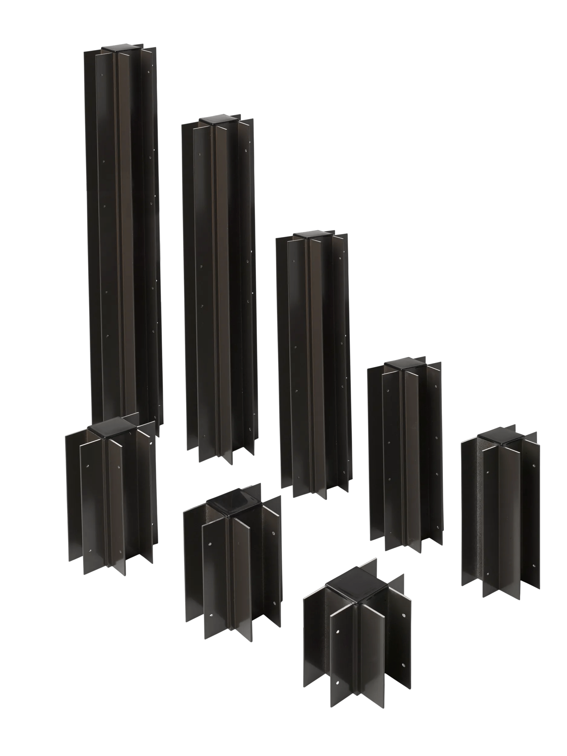 - Powder-coated aluminum with plastic caps to keep out moisture