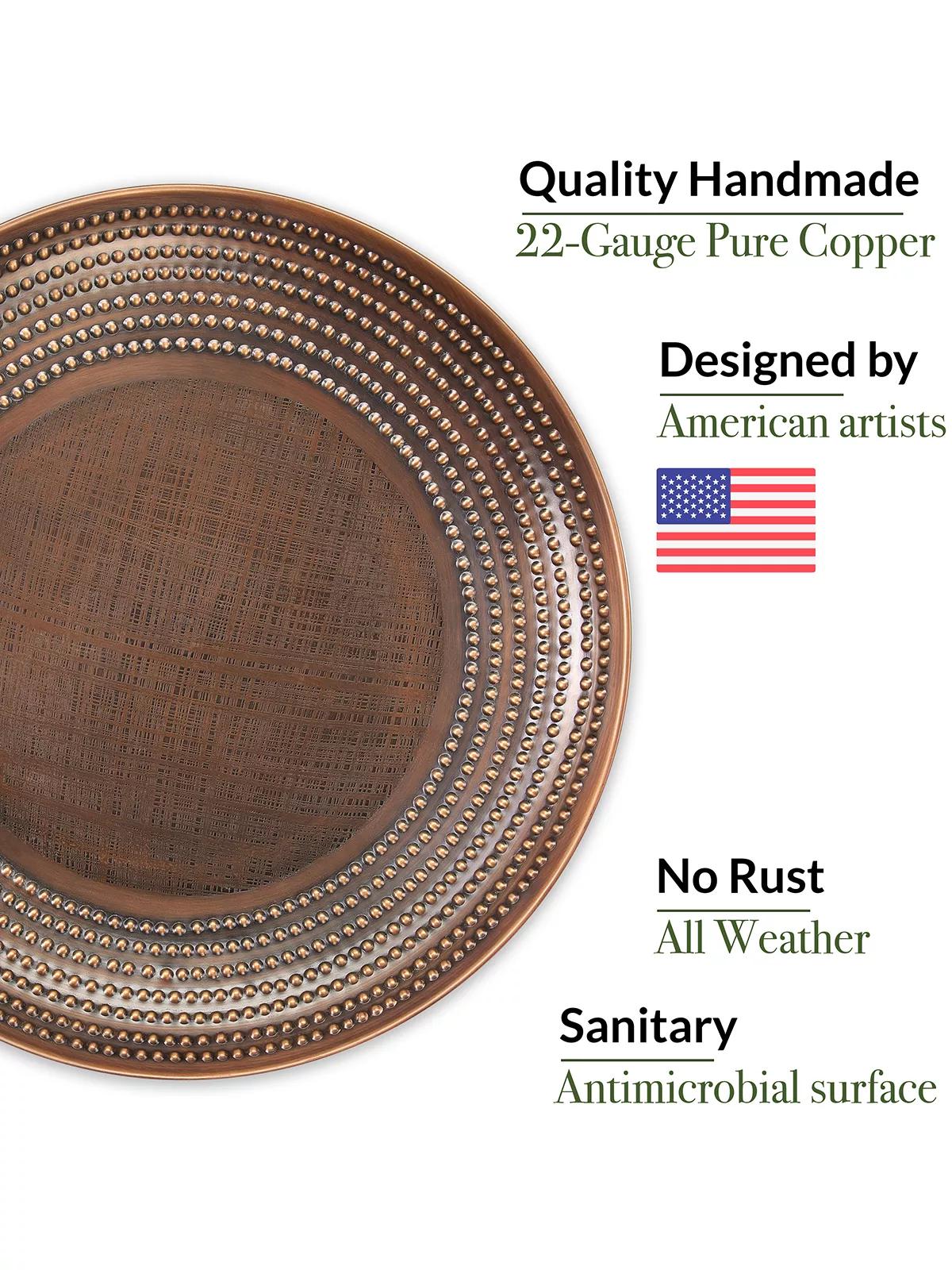 - Artisan-hammered, 13.5", 22-gauge pure copper bowl