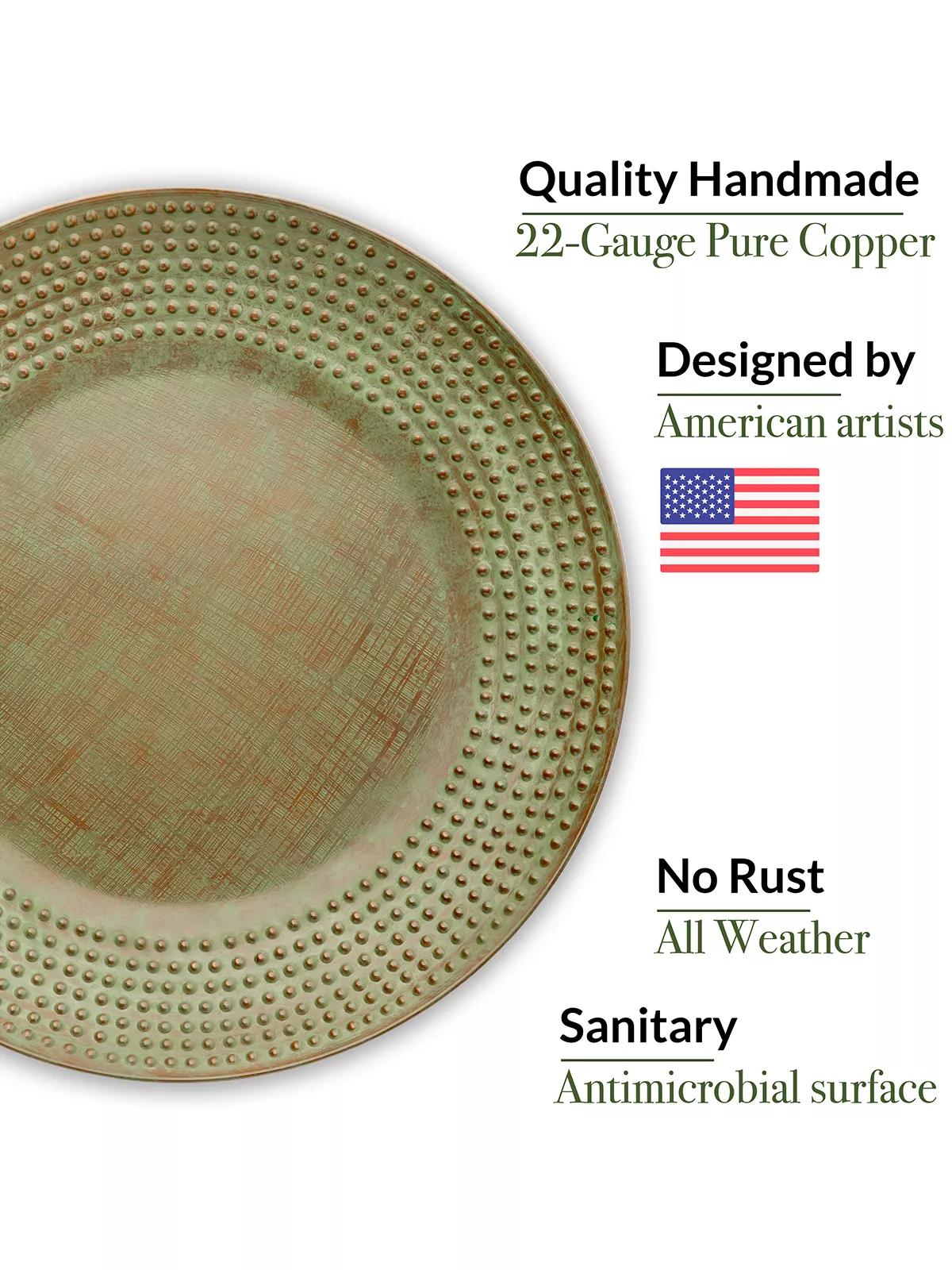 - Artisan-hammered, 18", 22-gauge pure copper bowl