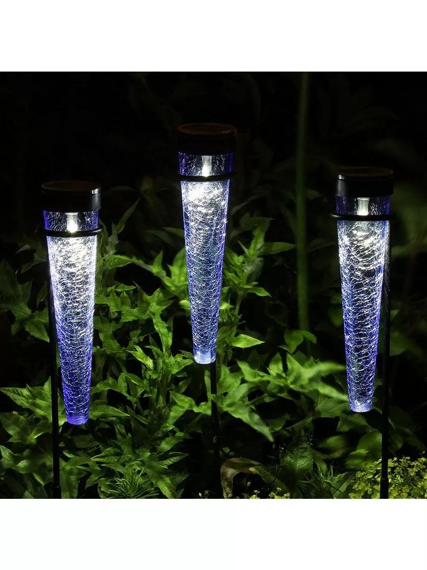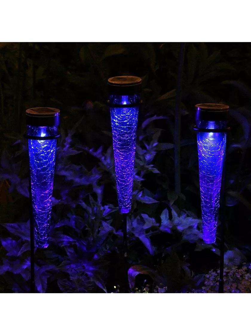 The ever-popular Achla Designs Solar Sparkle Cones have been adapted for garden stakes. Made of colorful hand-blown glass, we use a layered glassmaking technique that gives the glass a crackled effect. As the solar-powered LED light shines shine through the hand-blown, colored glass, a beautiful glow is created, adding a magical ambiance to your yard, garden, or patio. Light up paths and walkways, garden beds, and patio borders- stake into the ground in any area of the yard or landscape. Requires no wires or cords. Great outdoor lighting lets you enjoy spending time outside, even after the sun goes down.