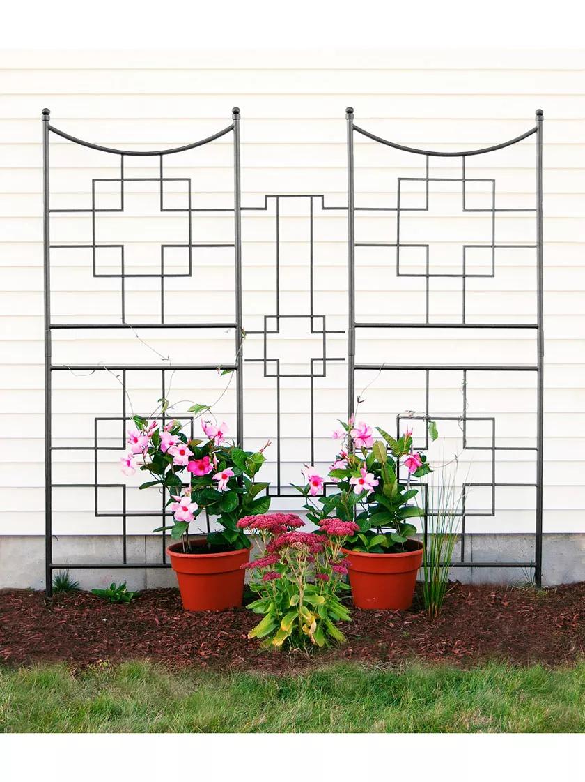 The Square-On-Squares Trellis features the functionality of a sturdy plant support with the artistic style of a well-designed steel structure. This piece is equally at home with contemporary design or covered with roses in front of a Craftsman bungalow. Purchase two trellises to create a wide garden panel to support a living screen of foliage. The Square-on-Squares Collection features a distinctly contemporary aesthetic of clean, simple designs made with overlapping right-angles. The many pieces available in this group can be used to create a unified modern landscape theme to bring a modern style to your home and garden. Additional collection pieces sold separately.