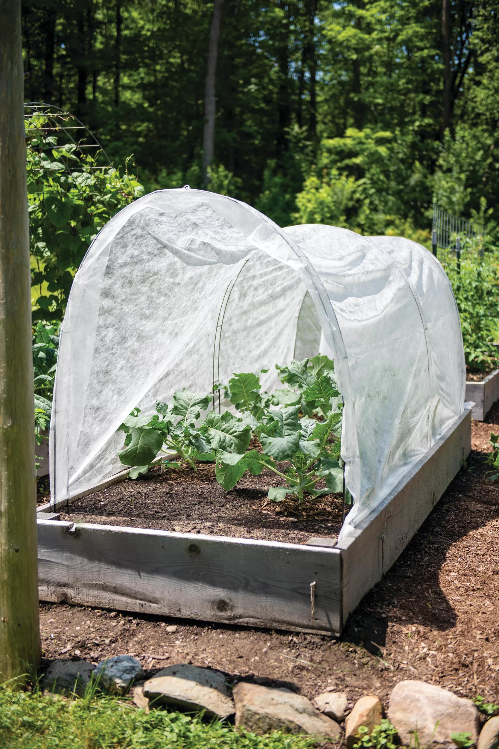Self-staking hoops anchor securely into the ground. Thumb screw at the base allows you to set hoops at the height you need, and raise them as plants grow. Double-wire design makes a sturdy support for protective fabric. We recommend placing the hoops 3 to 4 feet apart and combining with our Garden Quilt, All-Purpose or Summer Weight fabrics. Also works well with bird, insect, or shade netting. When installed in a 4' wide bed, the highest point ranges from 44" to 62".