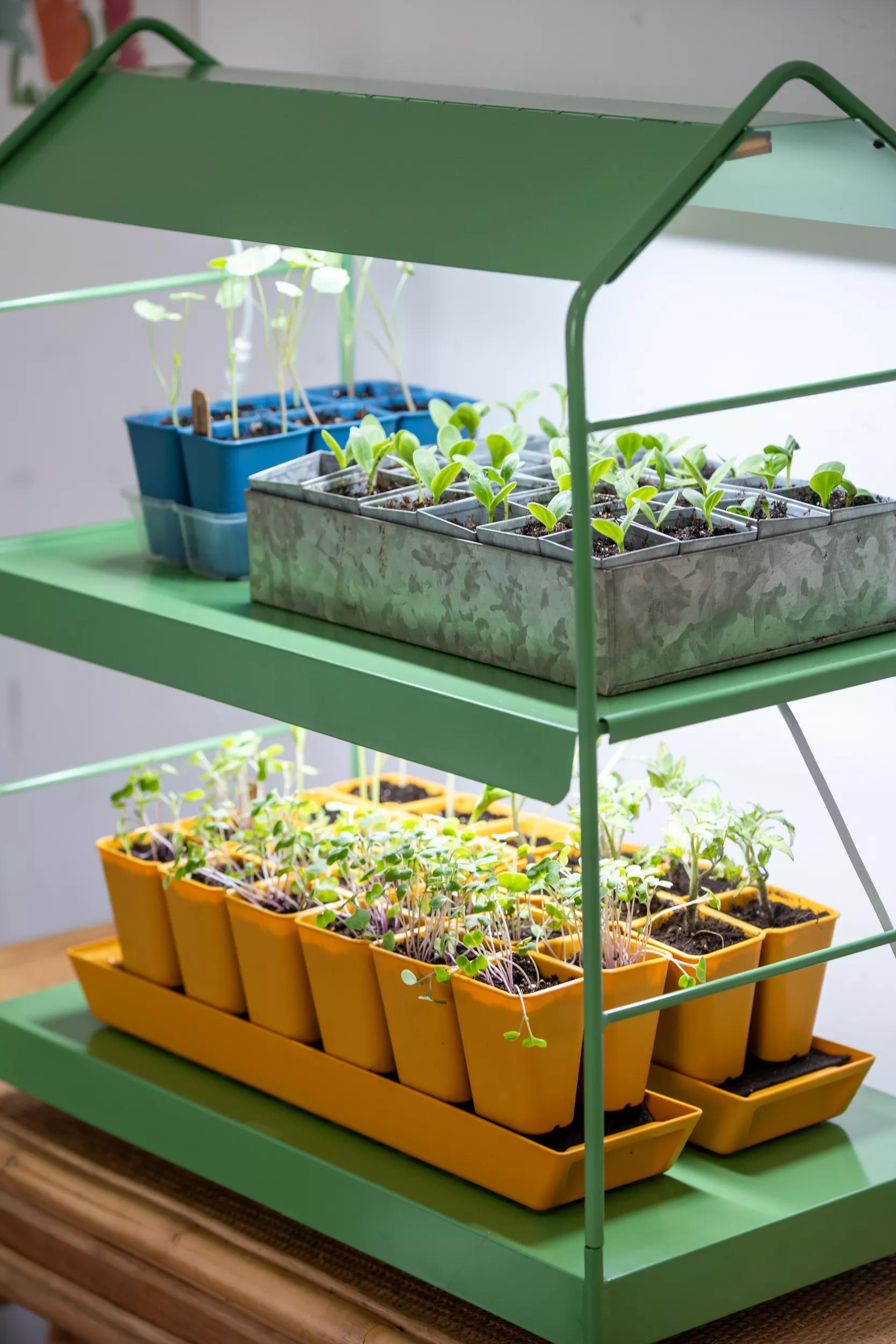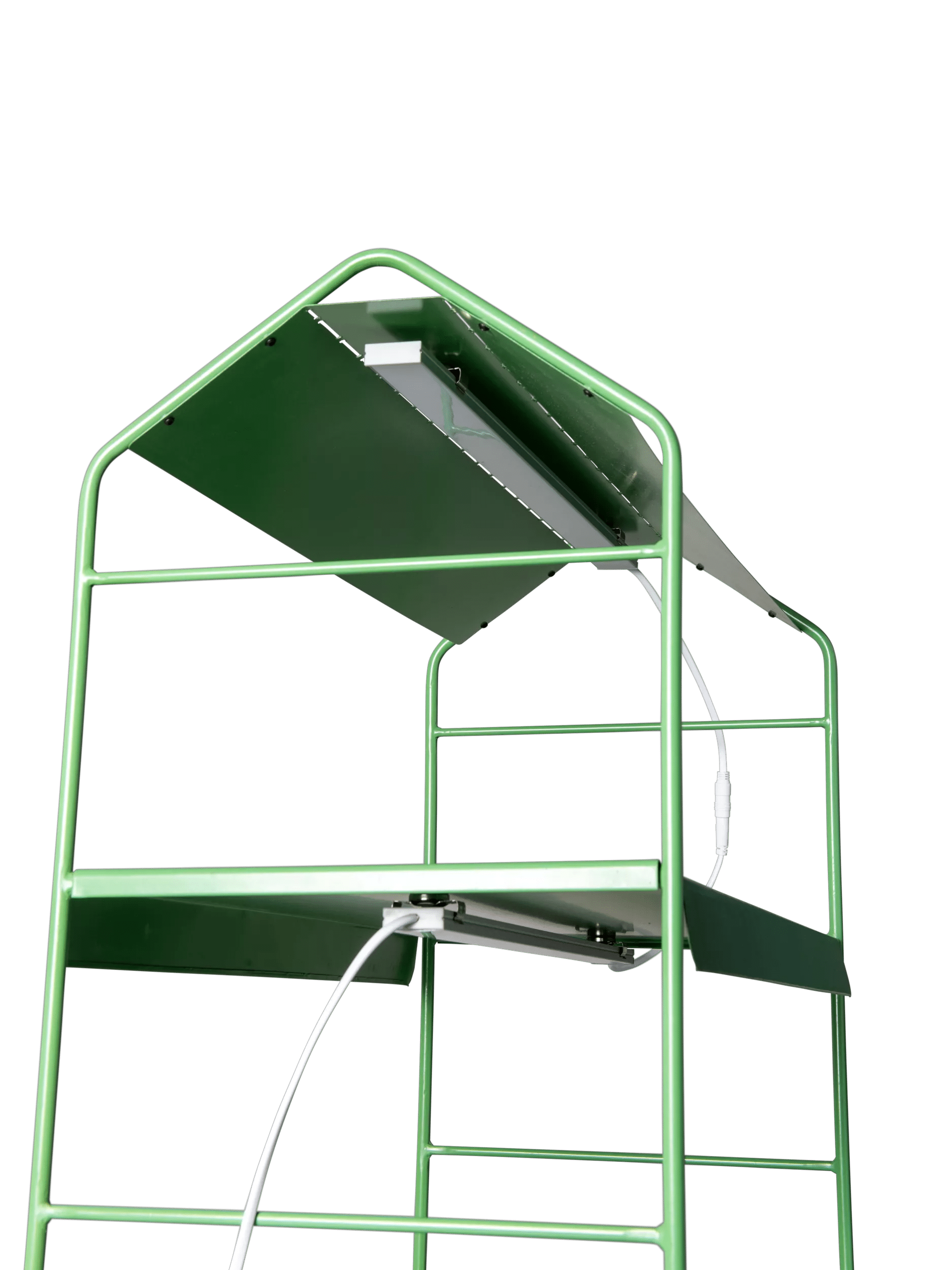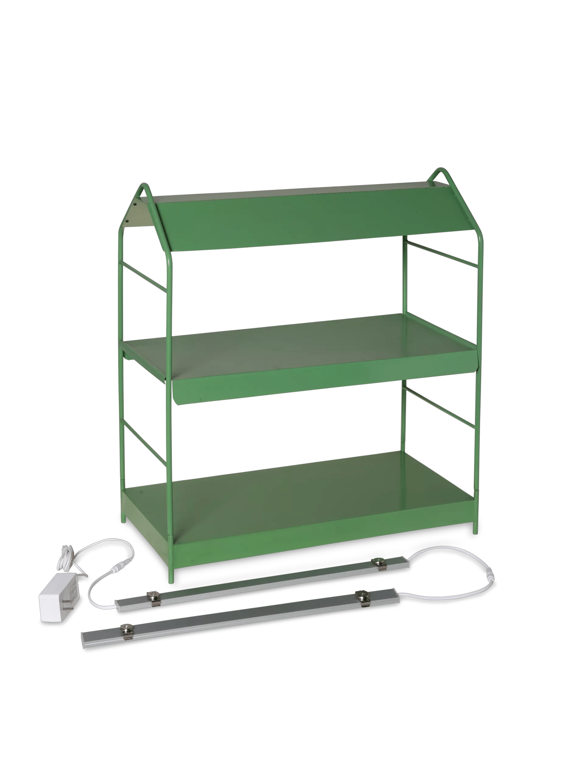 With a modern, minimalist look and a compact footprint, this simple and stylish grow light garden is the perfect small-space solution for starting seeds and keeping houseplants happy and healthy. Made from durable, rust-proof galvanized steel with attractive and protective green powder coating, the frame is lightweight — but it packs heavyweight growing power, illuminated by energy-efficient, full-spectrum LED grow lights.