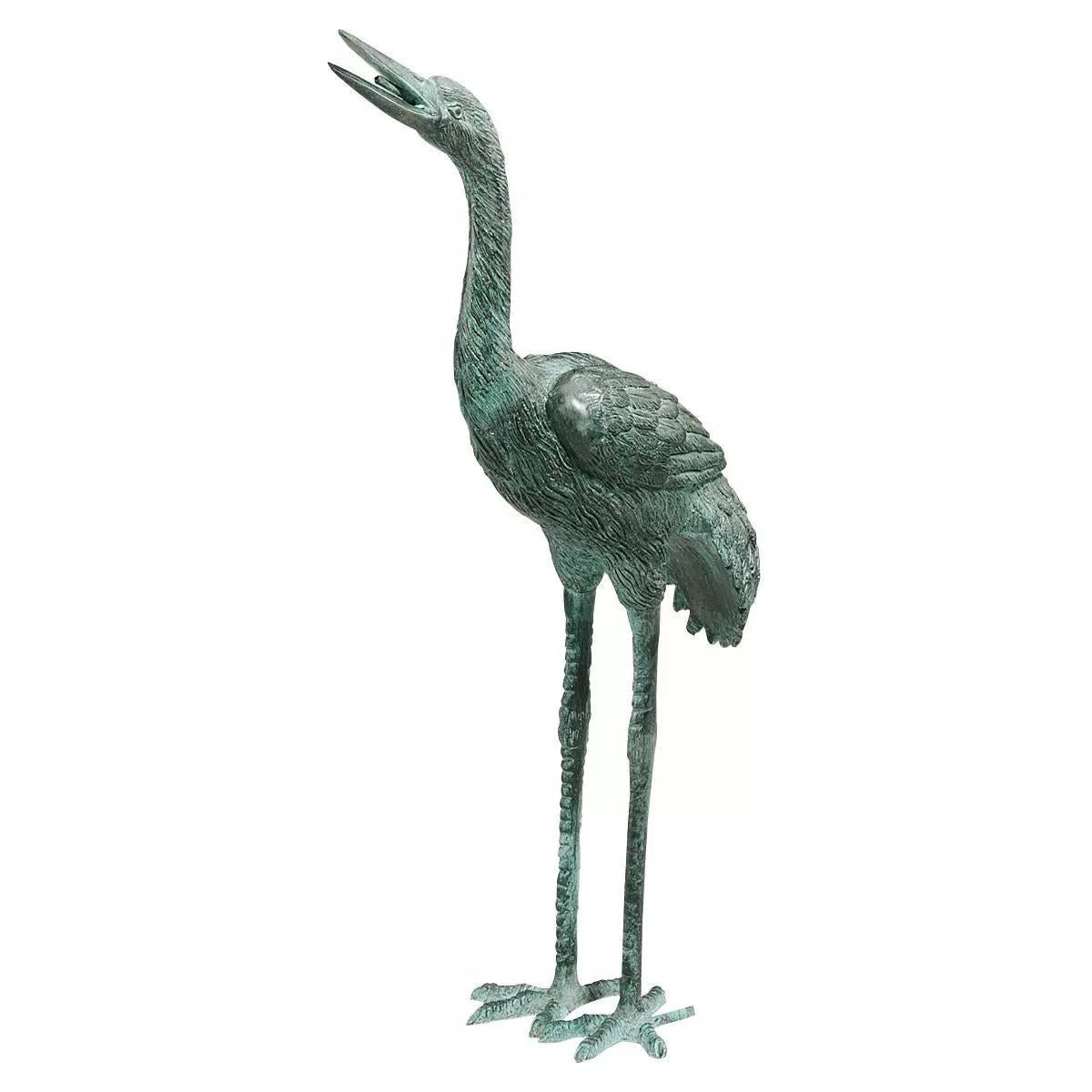 Frequently used in traditional English gardens or landscapes with water features, these cranes are spectacular showcase pieces. Their graceful long legs and articulated necks make them a perfect fit for an entryway, or place them among tall plants or by the side of a river or pond. They are piped through the body and neck for optional fountain use.