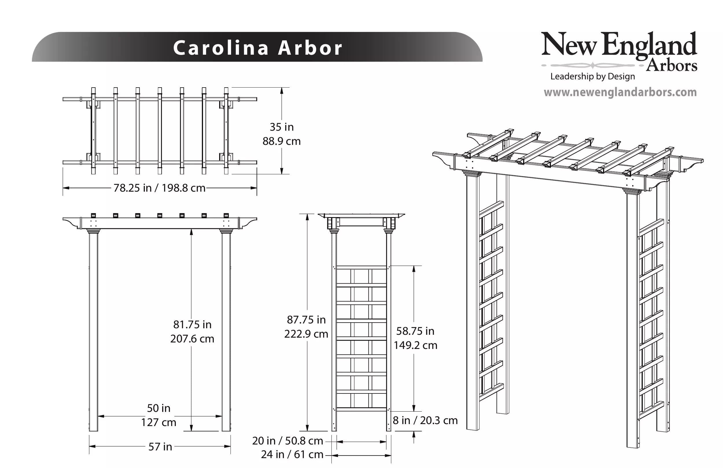 The Carolina Composite Vinyl Arbor provides you with the natural, rustic look of wood with absolutely zero maintenance. No sanding, staining, or painting required - just install and enjoy. The color of this wood composite arbor will season over time. Arbor opening is 50” wide, overhang is 35” deep and posts are 2” x 3.5”.
