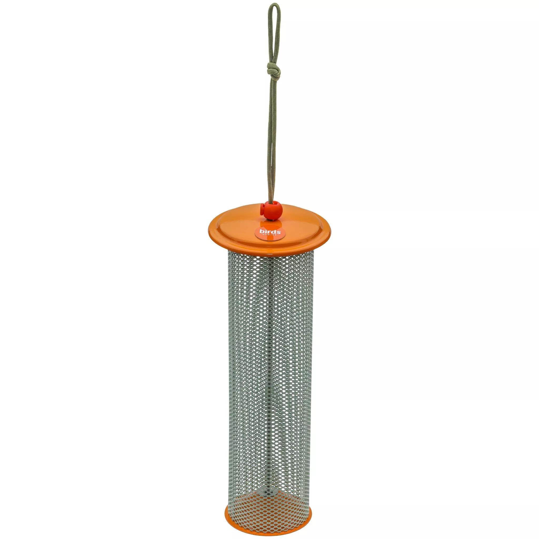 Made in the usa, all metal construction, powder coated top, bottom and screen, center seed diverter, paracord hanger with cordlock, capacity: approximately 1.5 Lbs. Of nyjer, special finch mix. Attracts siskins, purple finches, titmice, goldfinches, house finches, indigo buntings, juncos.