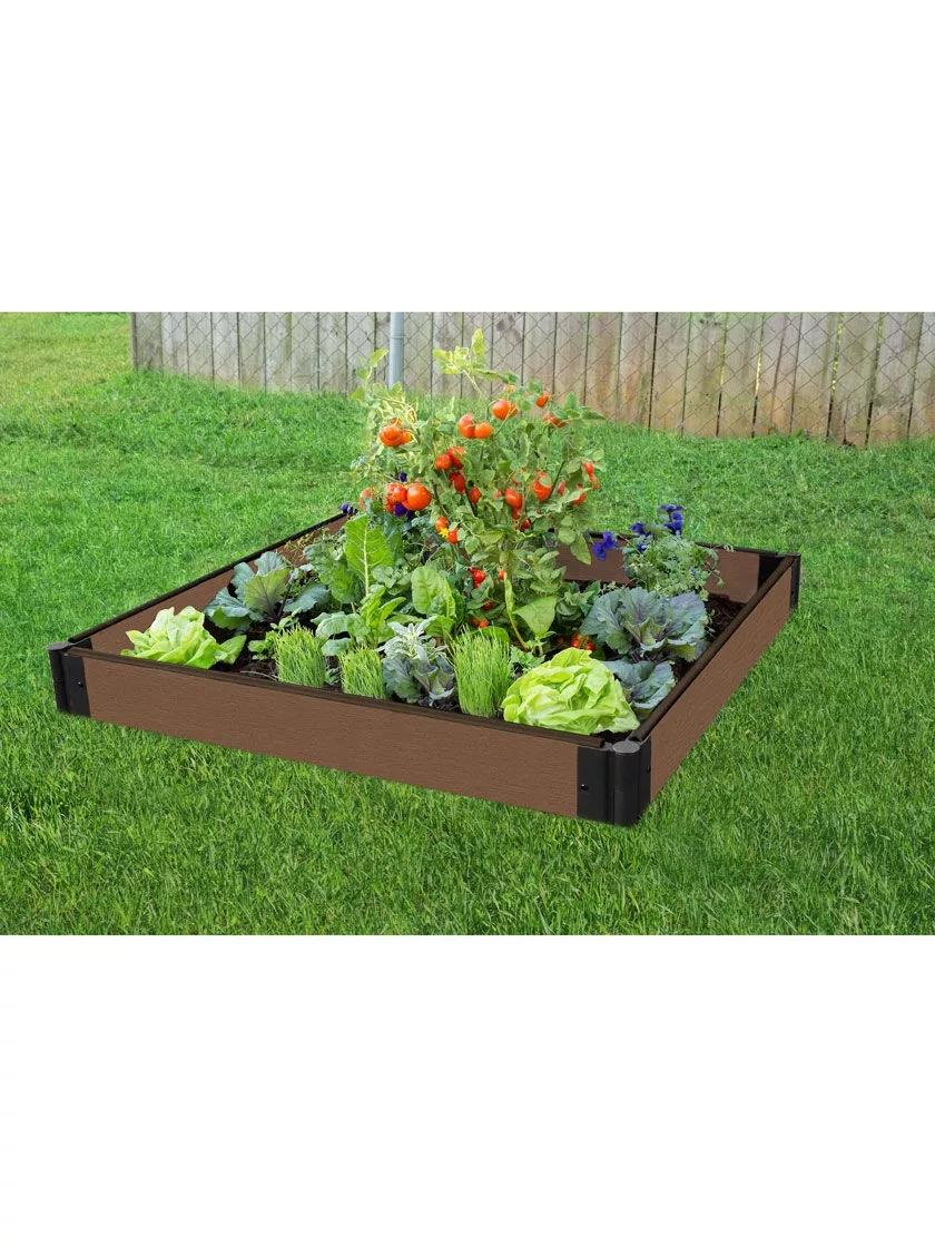 Did you know? You can grow up to 32 different plants inside your 4’ x 8’ garden using “Square Foot Gardening” techniques!- Composite boards of 38% post-consumer recycled plastic and 62% sustainable hardwood fibers