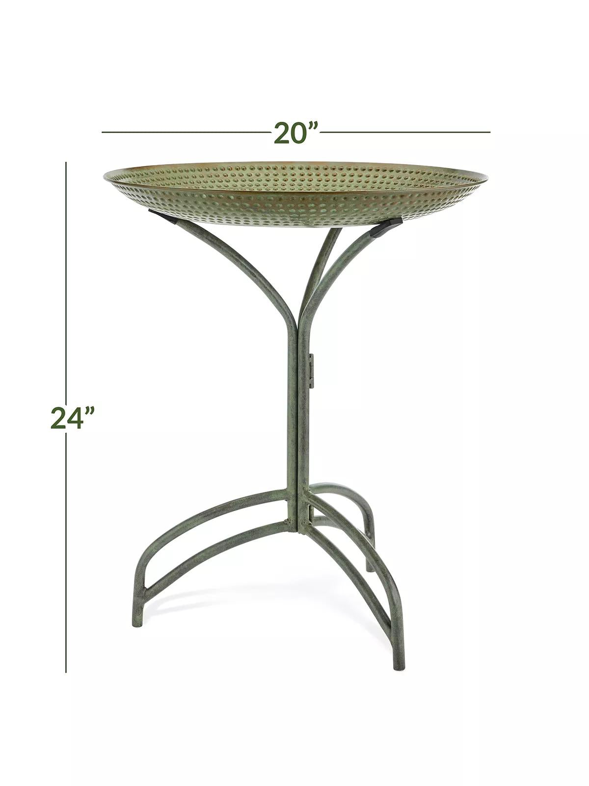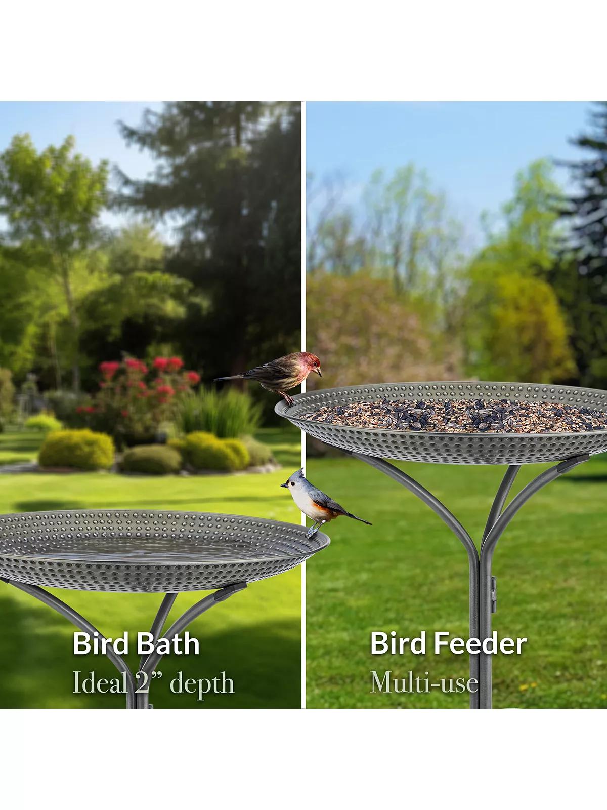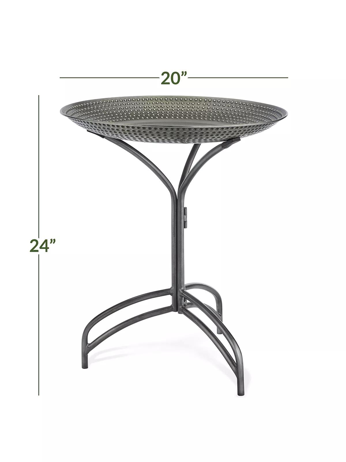 Elevate your outdoor haven with the Good Directions Free Standing Bird Bath. This 20" antique pewter basin offers a serene retreat for birds and bird lovers alike. A charming addition to any backyard or garden.