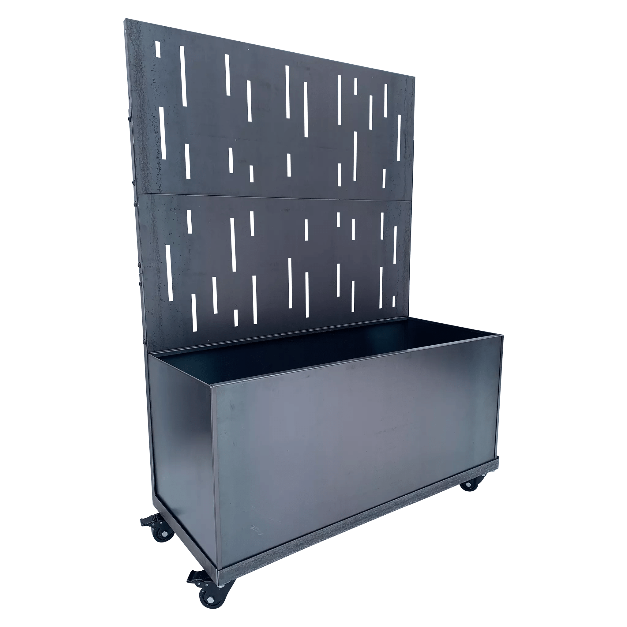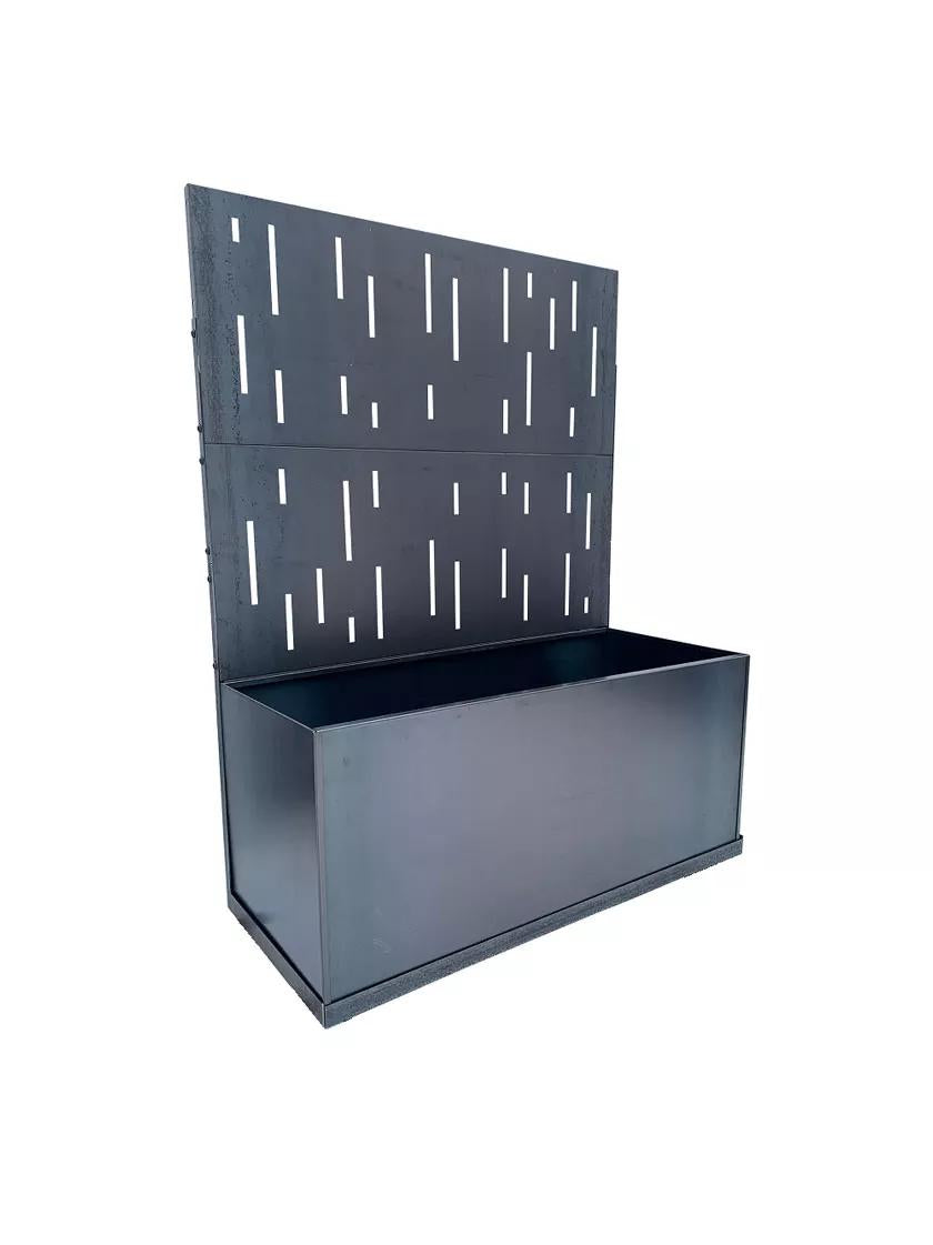 The Corten steel planter fits in a frame which has two laser cut decorative corten steel screens. The corten screens provide privacy and a modern feel.