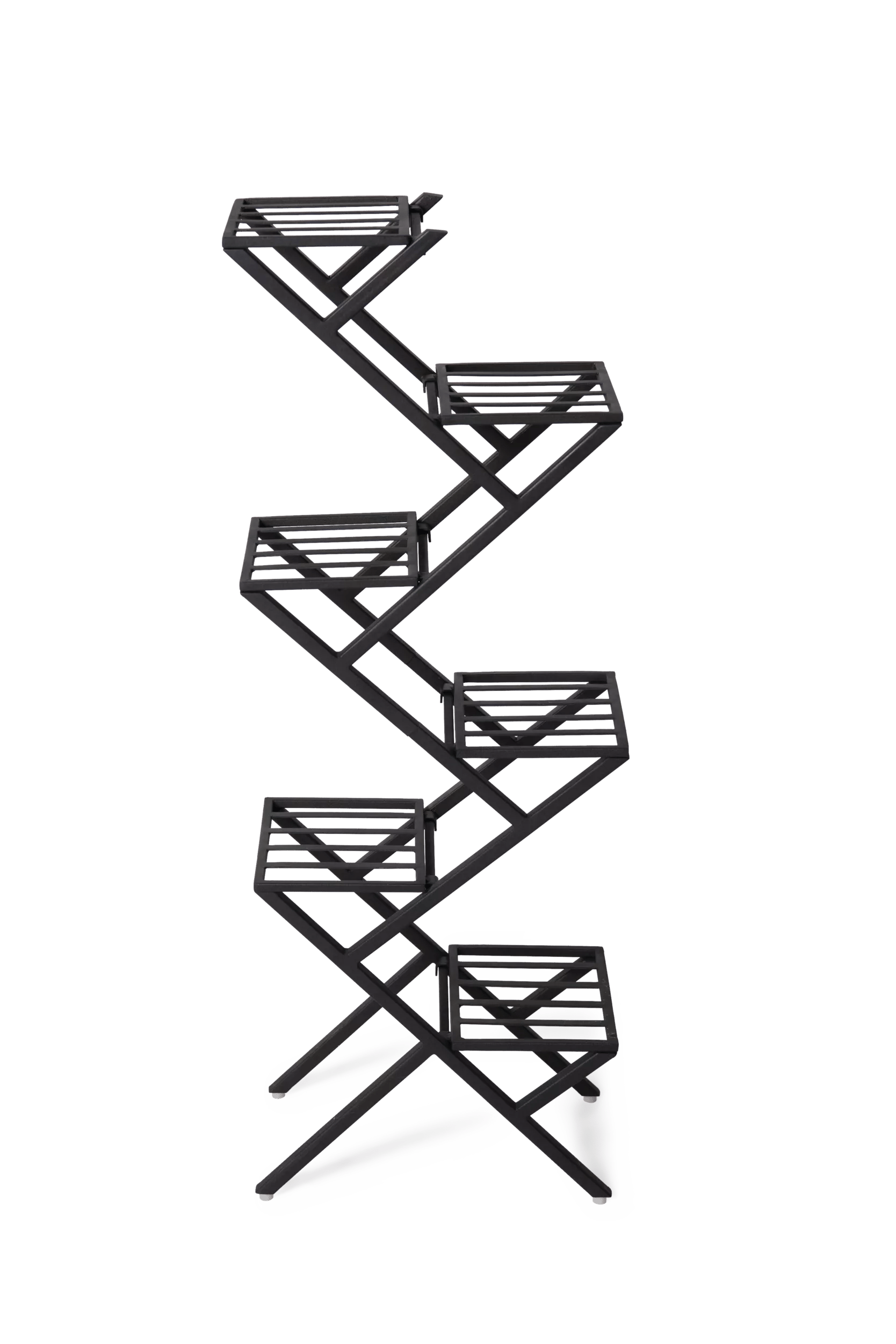 Alternating slatted shelves with a striking see-through silhouette offers an alternative to staid and stale plant stands. Six shelves at different heights let you elevate your plants to a new level. Stylishly display potted plantings, your favorite watering can, and other treasured collectibles. Shelves are secure but easily removable, and each level supports up to 15 pounds, so you can show off even your larger plants.