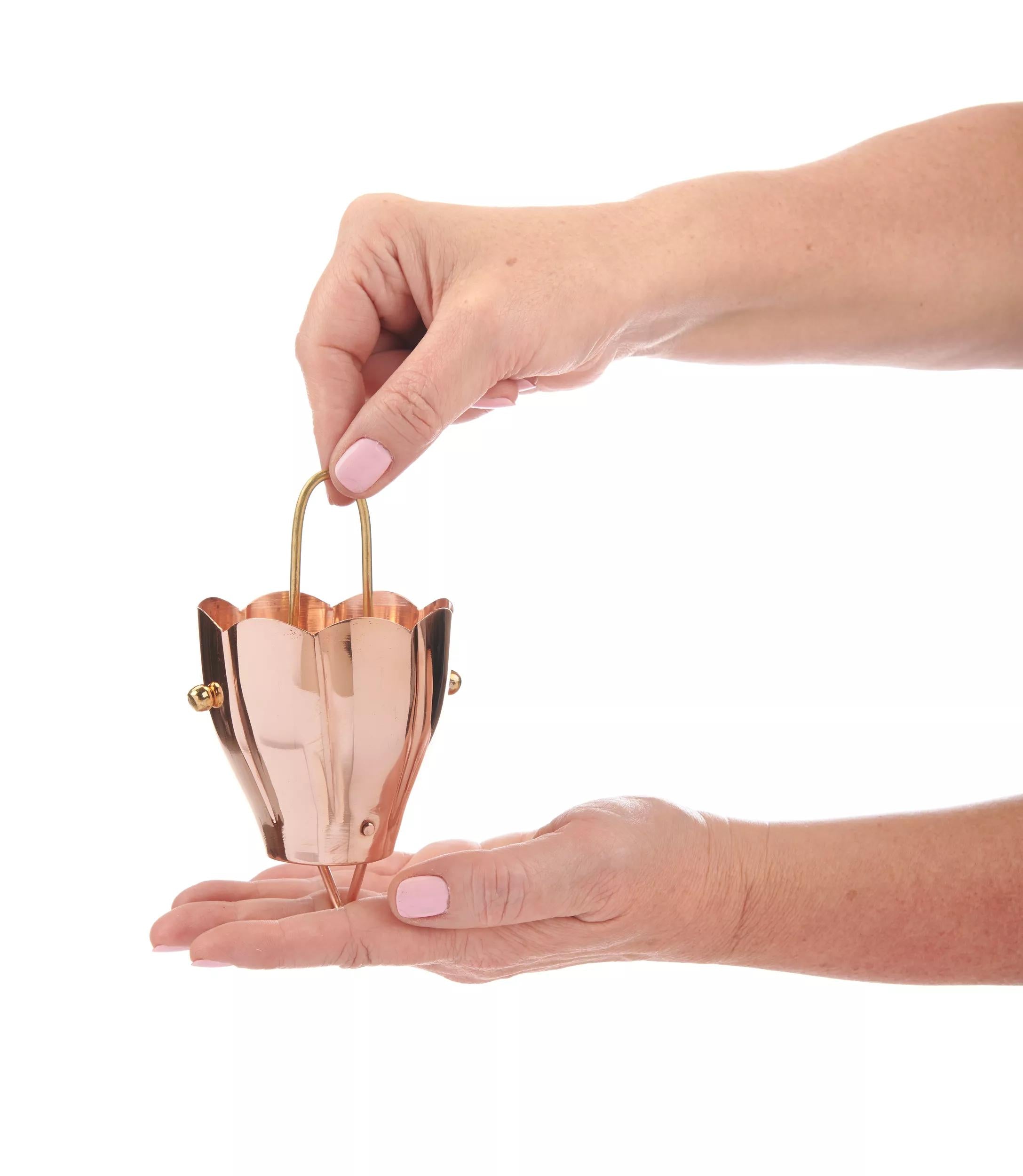 Originating hundreds of years ago in Japan, rain chains are a decorative alternative to plain gutter downspouts. Rainwater playfully dances and flows down the handcrafted copper channels as it is guided from rooftop to the ground. The intermingling of rain and chain creates sounds that are delightful to the ears. The piece develops a beautiful patina over time. Easy to install, (installation clip included).