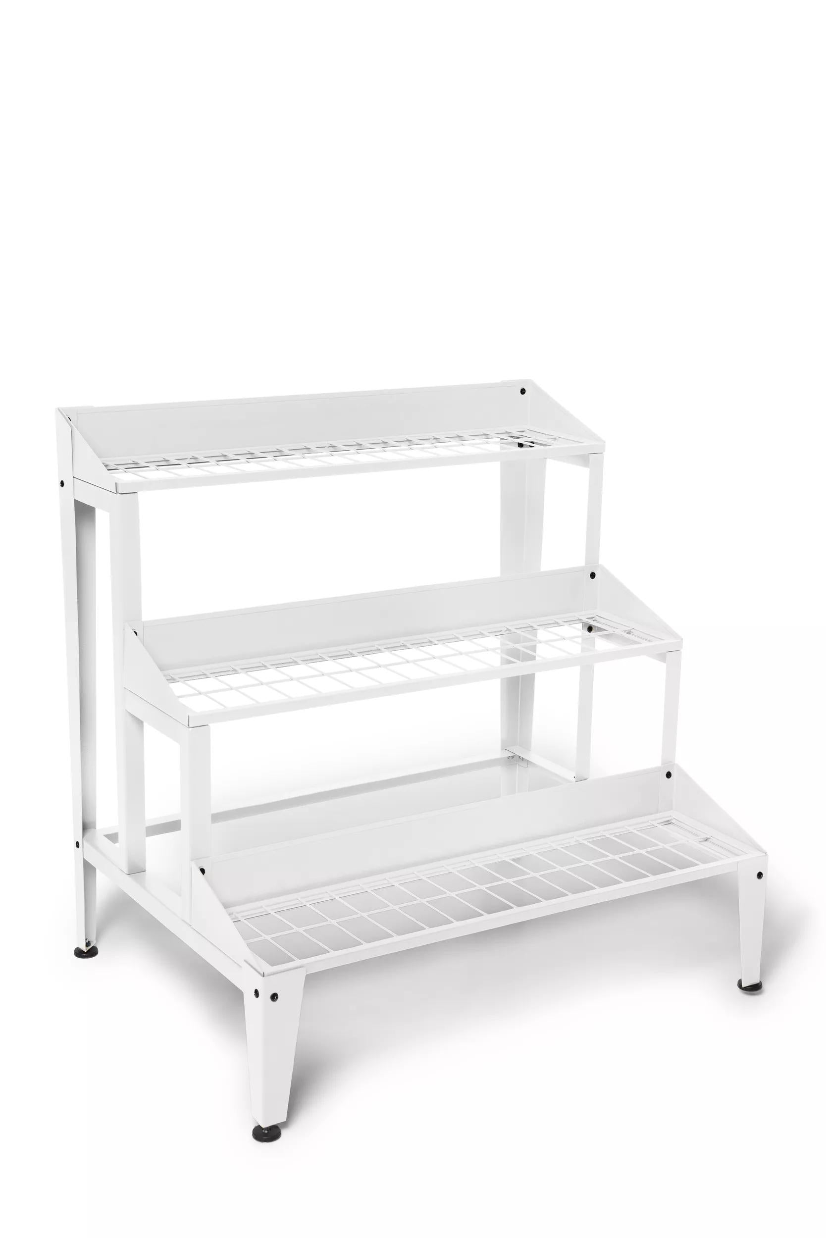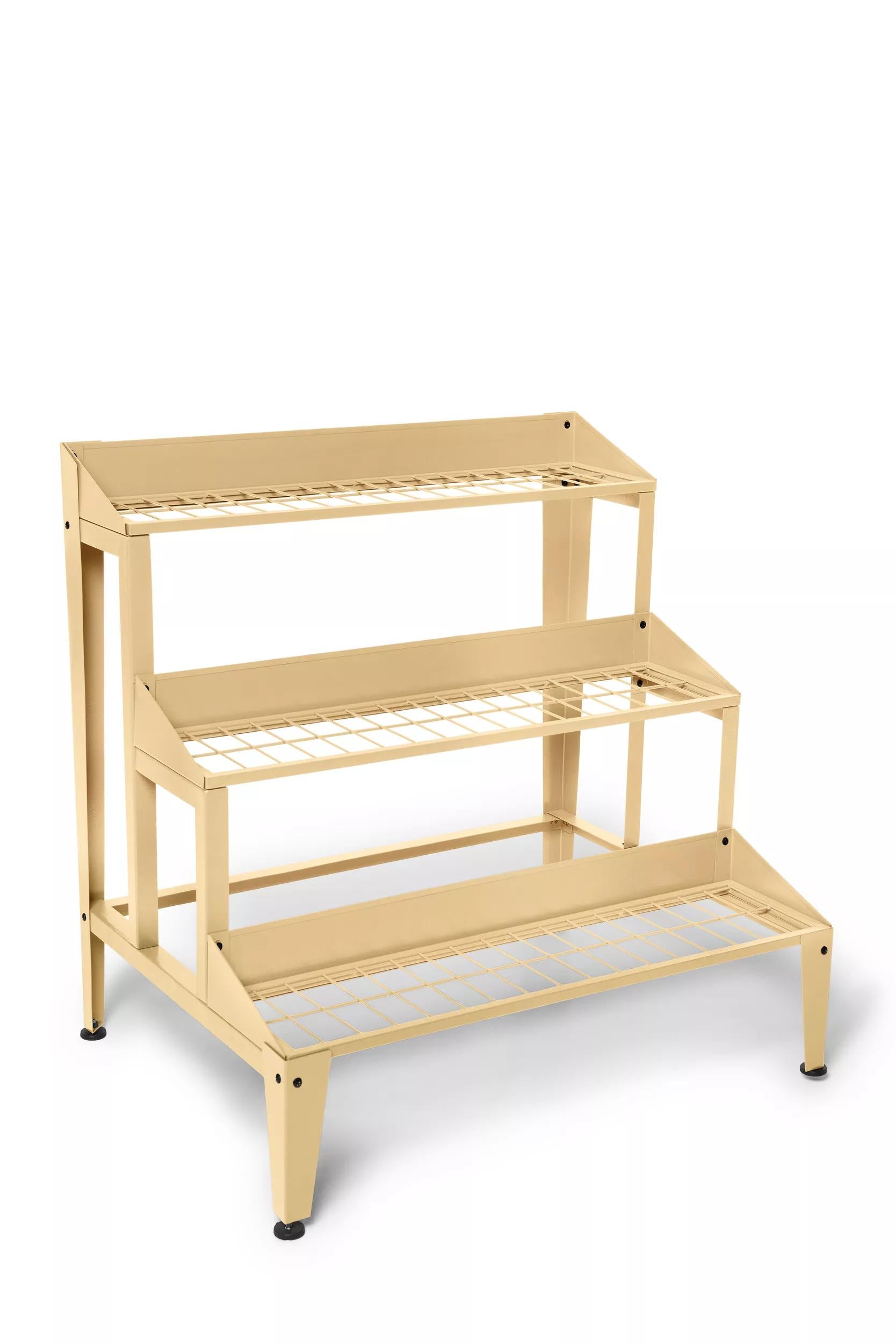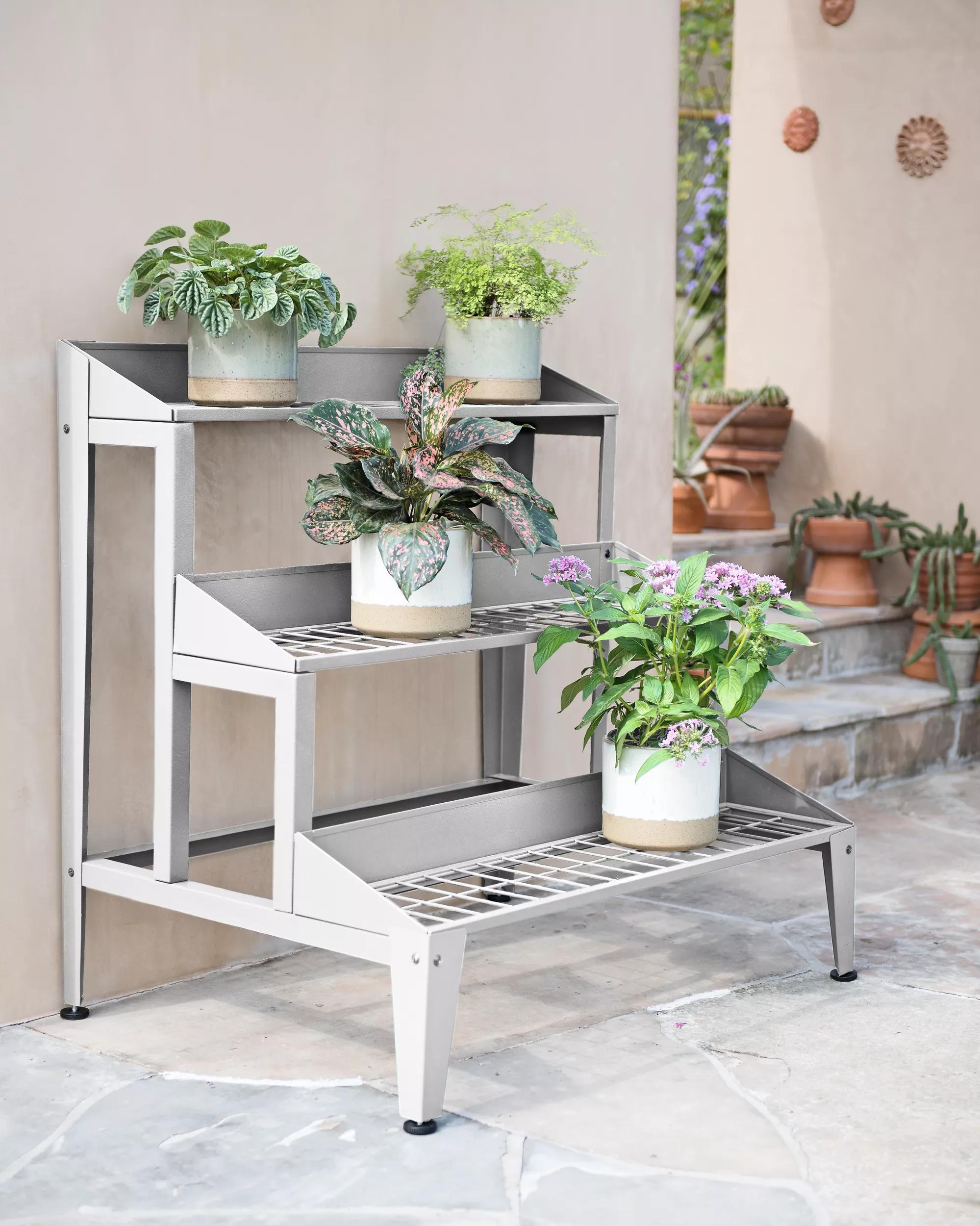 Our popular Demeter collection proves that style and substance can happily co-exist. Crafted of ruggedly handsome powder-coated steel, this three-tiered plant stand is refined enough for indoor use, yet can easily transition outdoors thanks to its rust- and fade-resisting finish. The design allows ample space between shelves for vigorous plants, and each sturdy shelf can display weighty pots with confidence. Plus, there's no need to worry about this stand wobbling, since it's equipped with foot levelers that adjust to uneven surfaces.