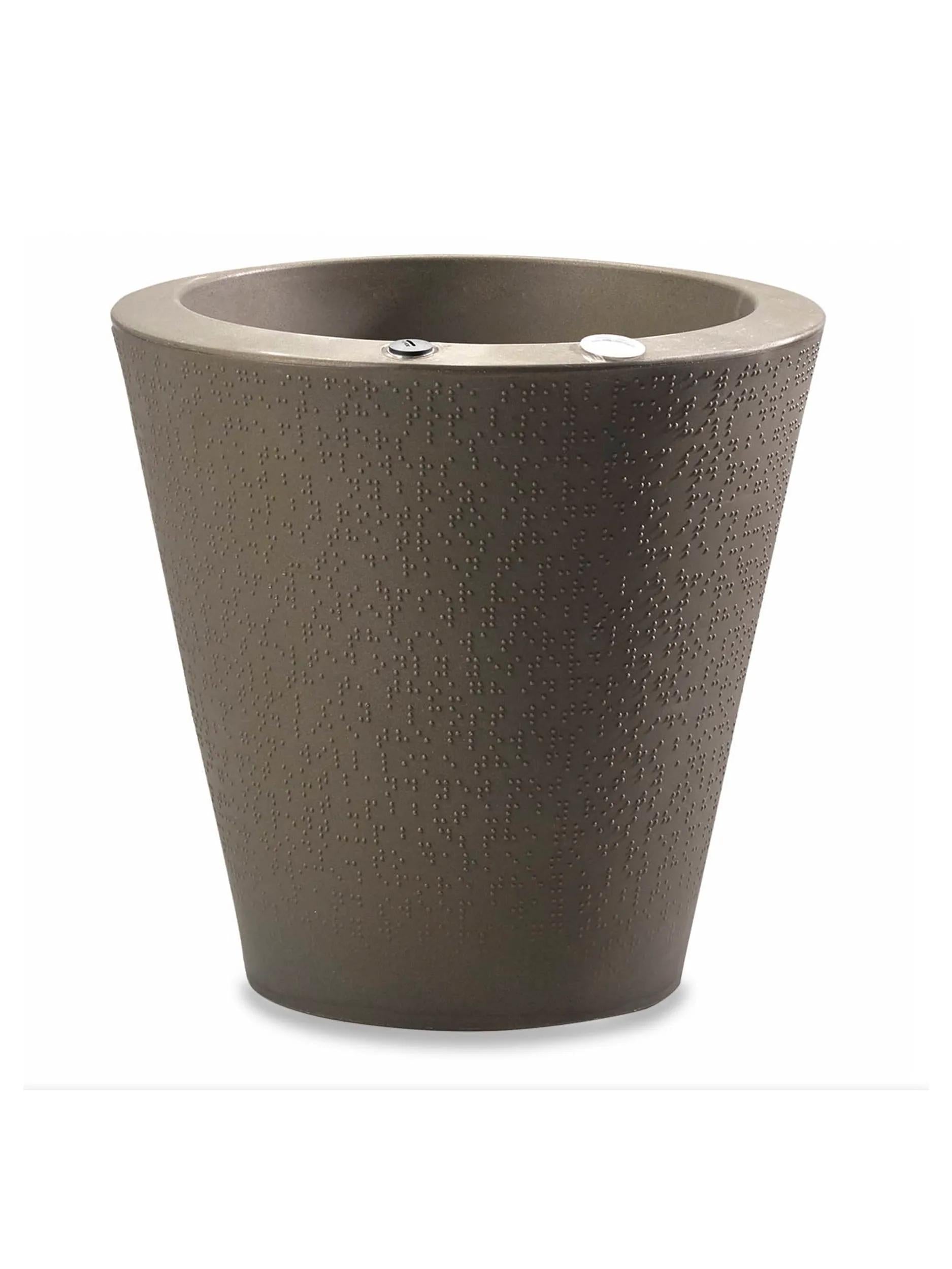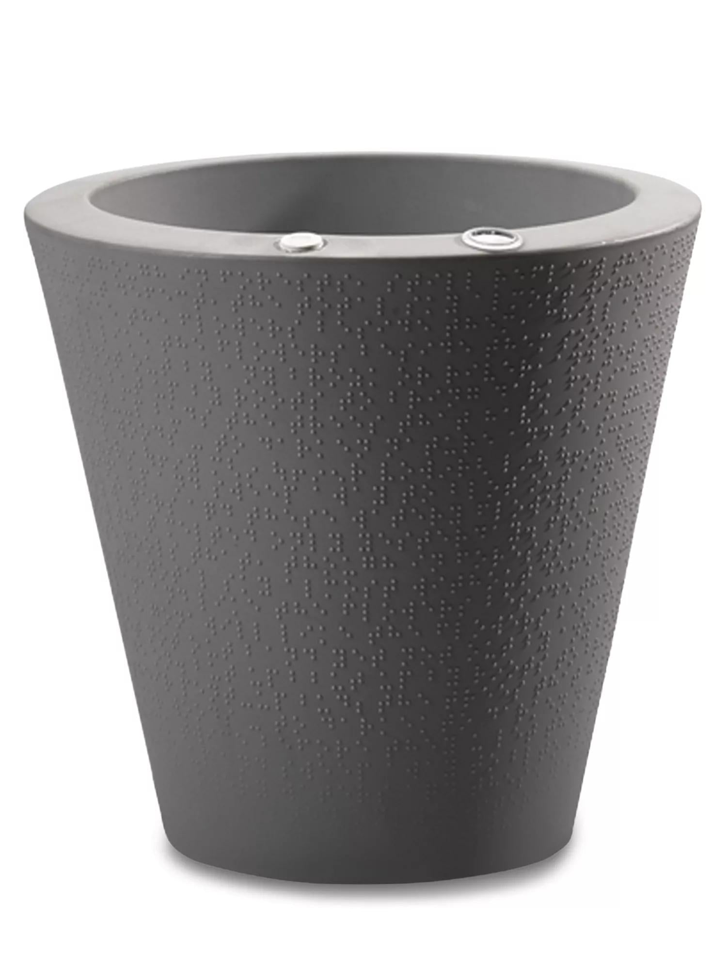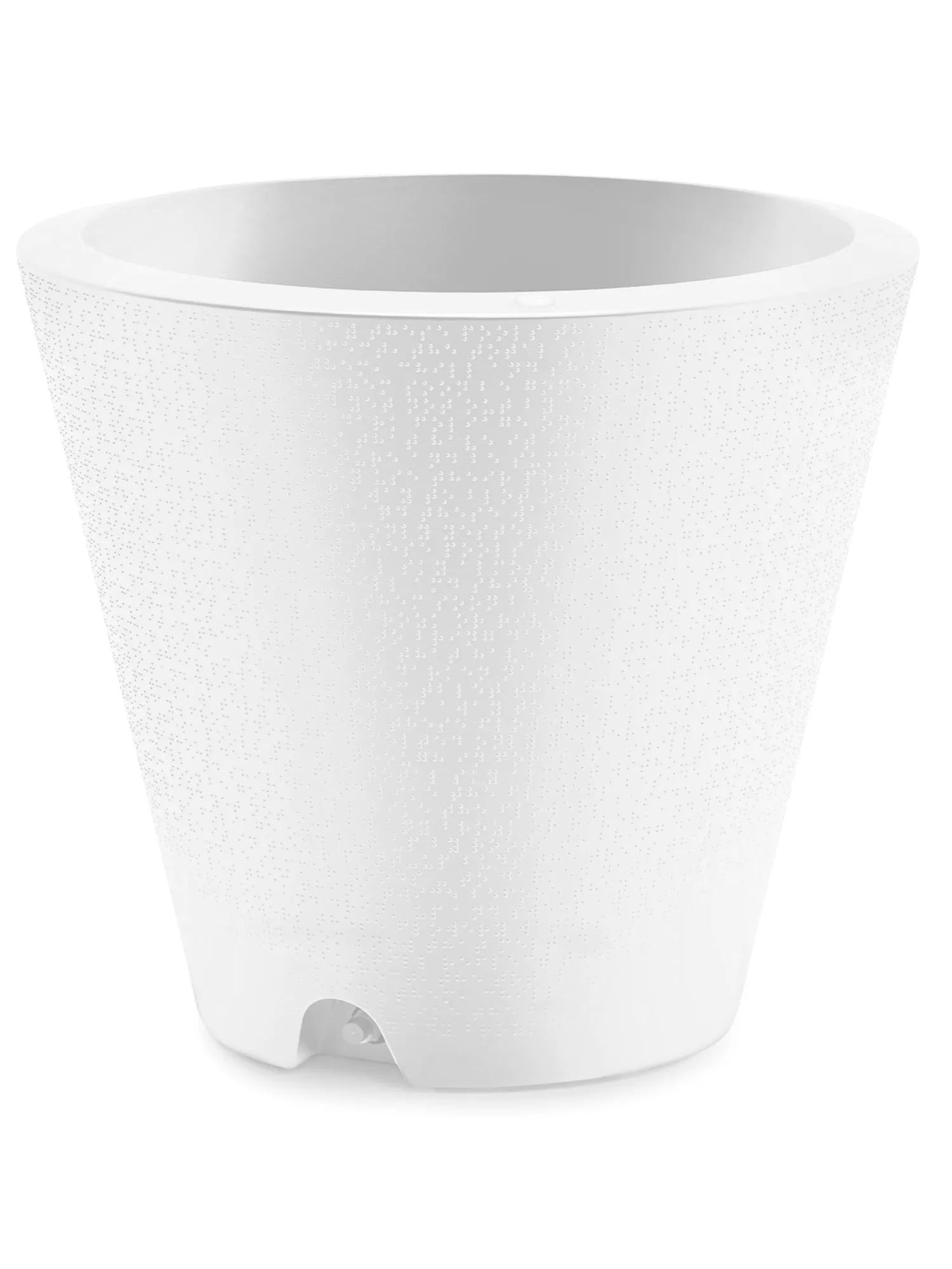 Dot Trudrop planters are made from premium, high-density polyethylene so they're lightweight and ultra-durable. The self-watering system utilizes the space between the double walls as a water reservoir. Depending on the weather and type of plant, the reservoir generally requires refilling every two to six weeks, freeing you from daily watering. Inspired by Braille, the designer added a raised-dot surface pattern that brings intriguing texture when viewed up close. Dot Trudrop planters are a natural for flowers, herbs and vegetables; the larger planters also accommodate shrubs and small trees. Use them to frame your entryway, grow your favorite culinary herbs or perk up your patio. They're available in multiple sizes and colors, allowing you to create dramatic groupings. By repeating a single style of planter, your artistic arrangement will have a unified look. These rugged planters are made from UV-resistant polyethylene and will easily withstand both high and low outdoor temperatures.
