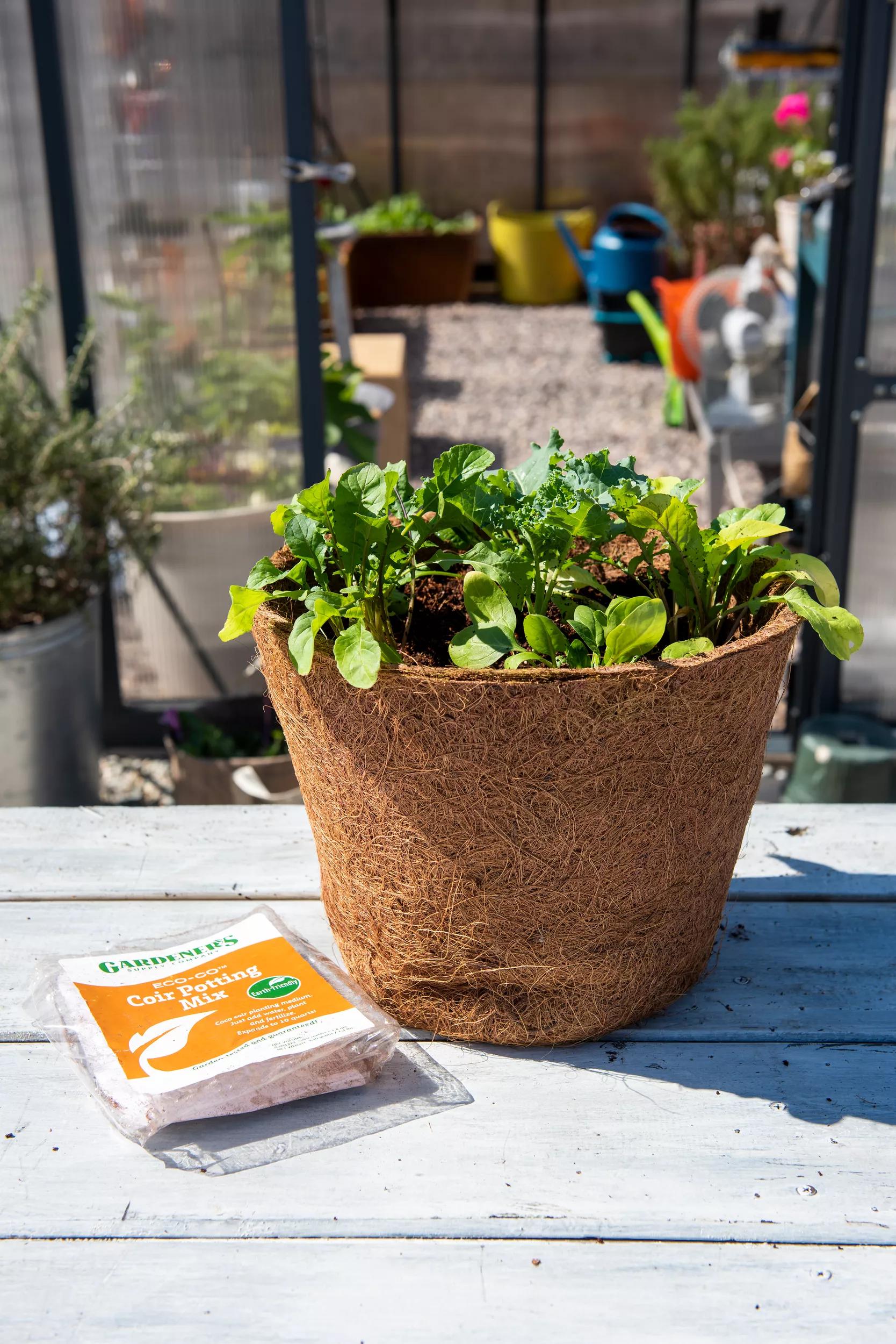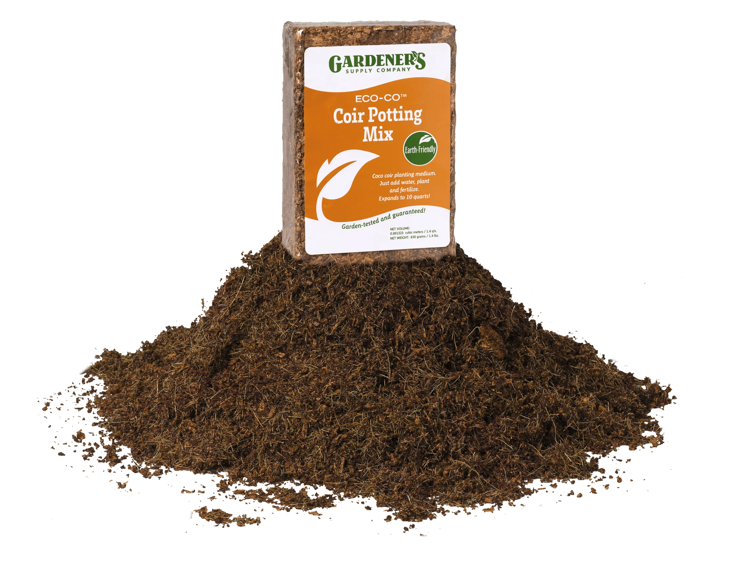 Our exclusive ECO-CO™ is an earth-friendly planting mix derived from coconut husks. It’s perfect to use on its own as a planting mix in pots, planters and window boxes, or as a peat-free alternative when you make your own planting mixes. Unlike other coco coir products, our ECO-CO™ undergoes a special process to remove salts and to balance the pH for optimal plant growth. Coco coir has excellent water-holding capacity, yet drains well — so important for healthy root growth. Our blend is a mix of fine and coarse grinds to provide the perfect environment for plant roots. Carbon-rich coir is also handy for layering with nitrogen-rich kitchen scraps and lawn clippings in the compost pile. It also makes a good bedding material for worm composters. Simply add water and each convenient compressed ECO-CO™ brick expands to 10 quarts of fluffy mix.