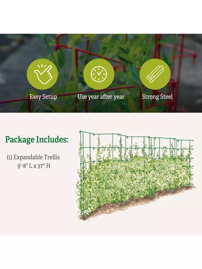 Everybody loves fresh peas, but supporting them with poles, twine and netting can be a hassle. Our sturdy pea trellis is an easy solution. Each trellis has eight hinged panels with big 8" grids. Simply zig-zag the panels through your row of peas and push them into the ground (add a stake on each end in windy locations). Total length 9'-8" by 37" high installed. These trellises are reusable year after year, and fold for easy off-season storage. They also can be used to support tomatoes, cucumbers and other vining crops.