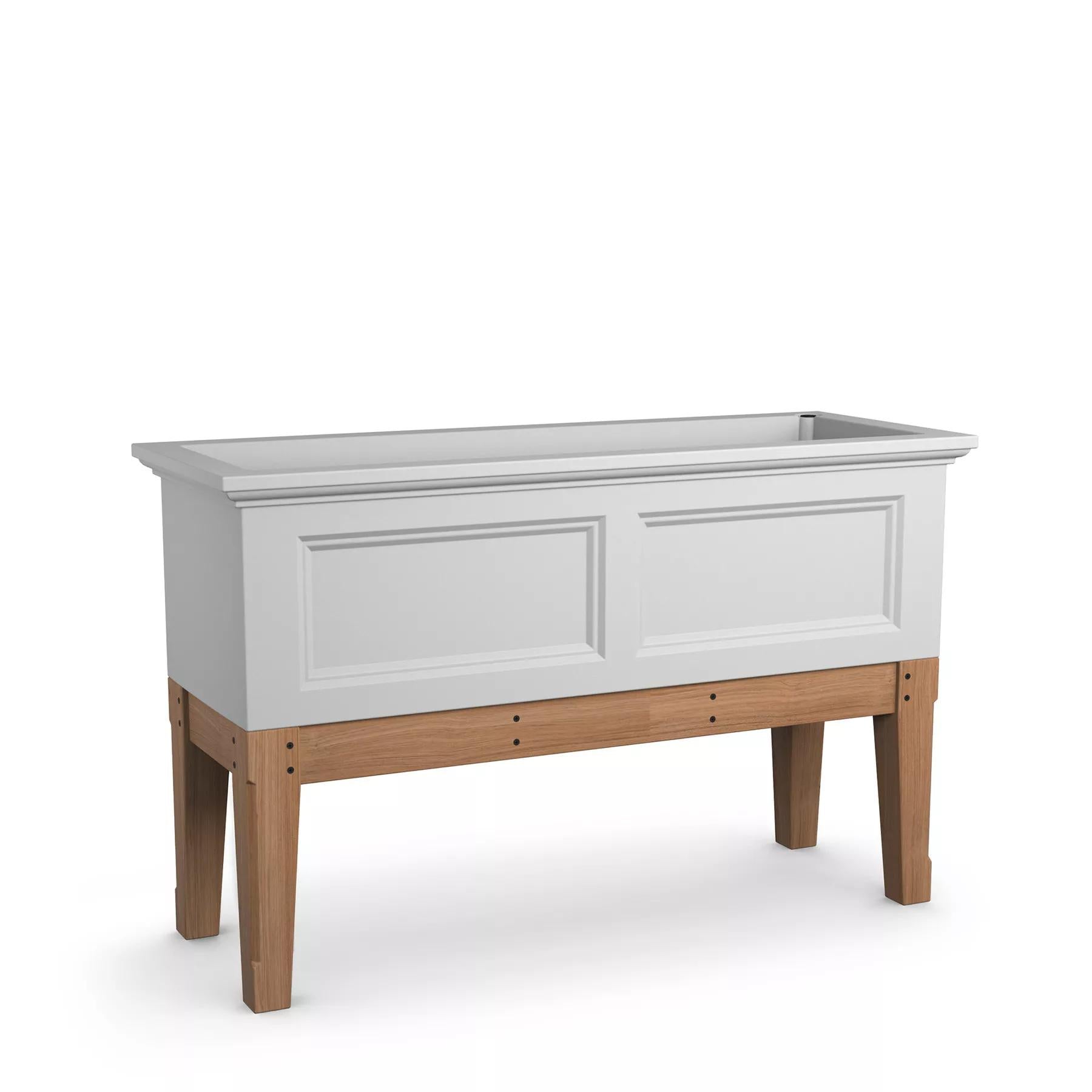 - Durable & weatherproof UV-protected polyethylene planter on wood stand