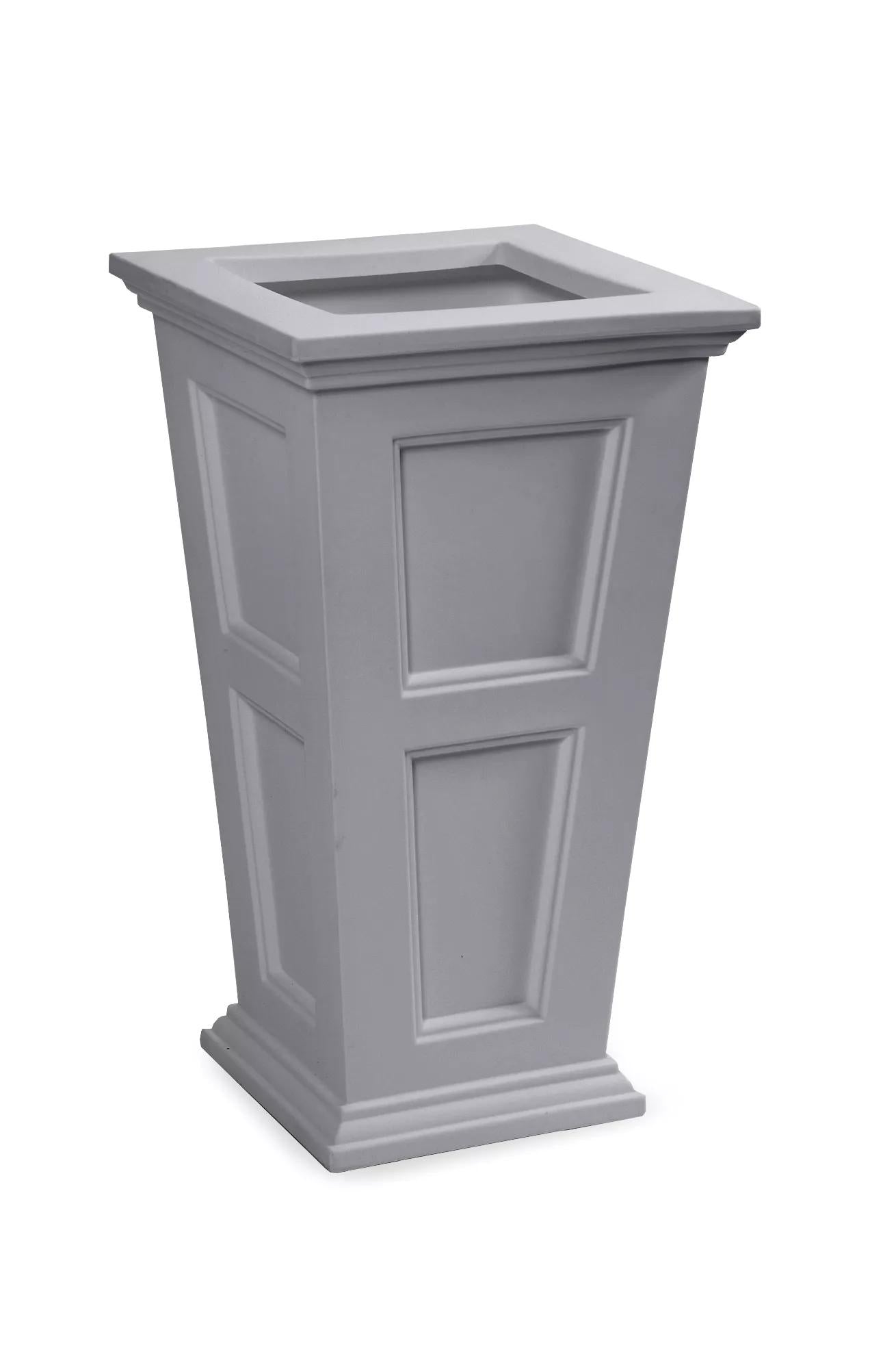 Dress up your landscape with these elegant, self-watering planters. They are rather tall planters at 28" high, adding some drama to your patio. With clean lines and raised panel detailing, they have the look of fine woodworking. But, unlike wooden planters these are virtually maintenance free because they're made from high quality polyethylene — there's no need for annual painting or staining. With the best UV protection in the industry, these planters have a 15-year guarantee against fading. They have built-in reservoirs to supply a slow, steady supply of water to plants — just what plants need for healthy, stress-free growth.