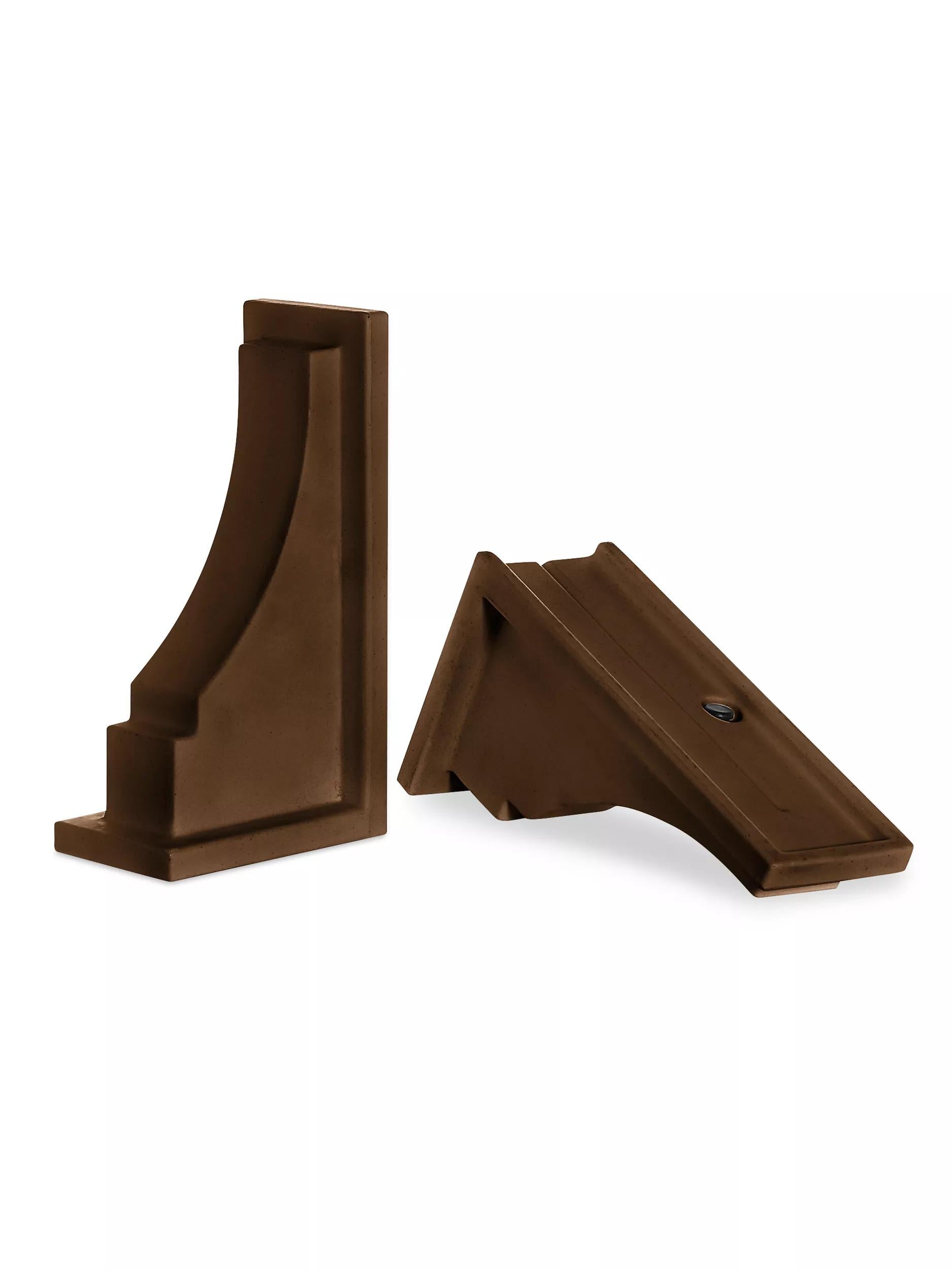 These elegant curved brackets look just like real wood, but they're made from high-quality polyethylene so they're easy to clean with a simple rinse from the garden hose. They attach easily to the Fairfield wall mount supports and add a beautiful finishing touch. Includes two decorative brackets and four screws for easy installation.