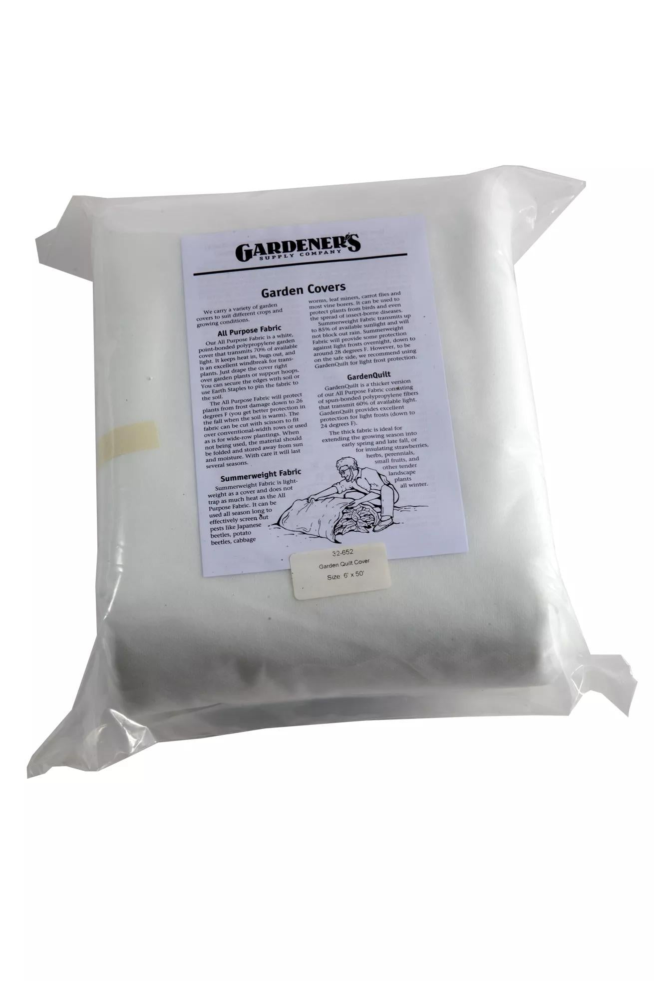 This row cover provides frost and cold protection down to 24° F. The thick, 1.25 oz. fabric is ideal for season extending in the early spring and late fall, or for overwintering salad greens, strawberries and perennials. 79.3% light transmission; lasts for several years. While this fabric is water-permeable, be sure to continue monitoring the soil moisture of plants underneath. Not recommended for summer use.