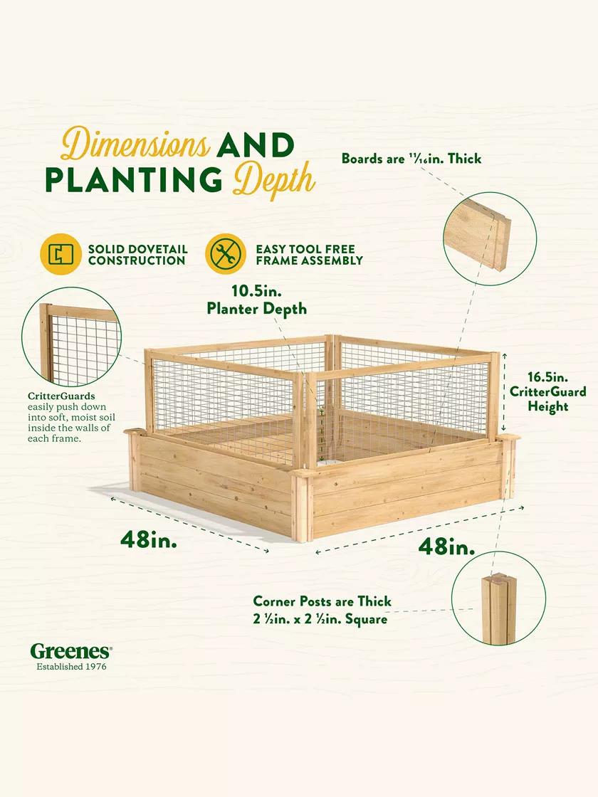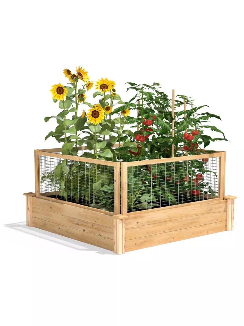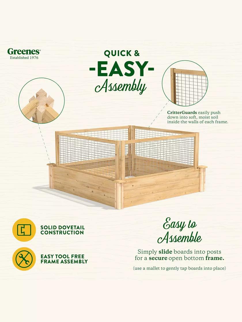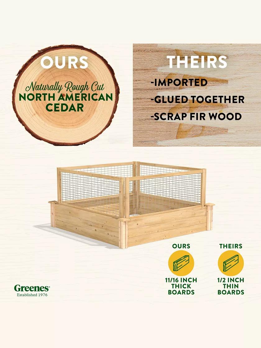 Cedar Raised Bed with CritterGuard Fence, 4' x 4' x 10-1/2"