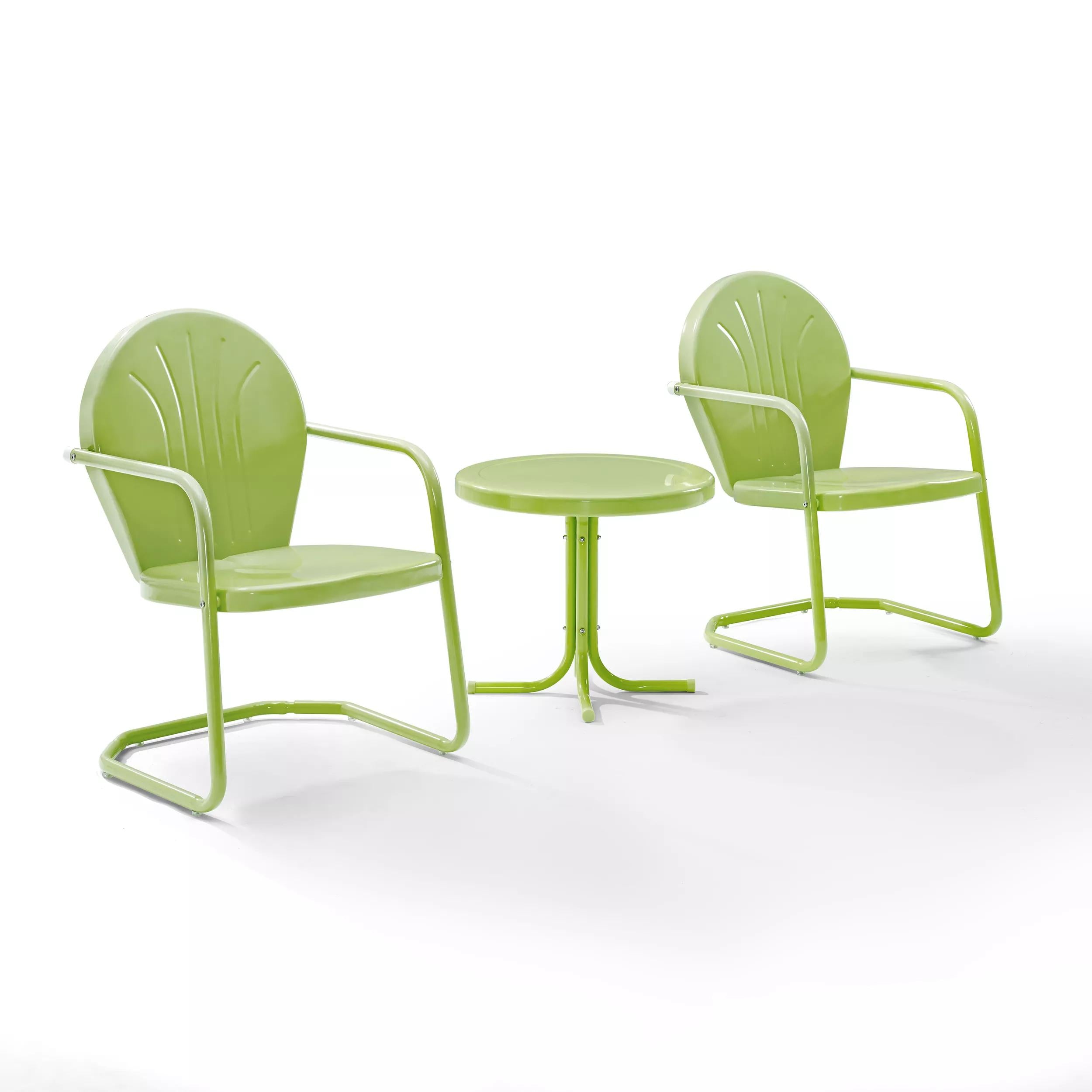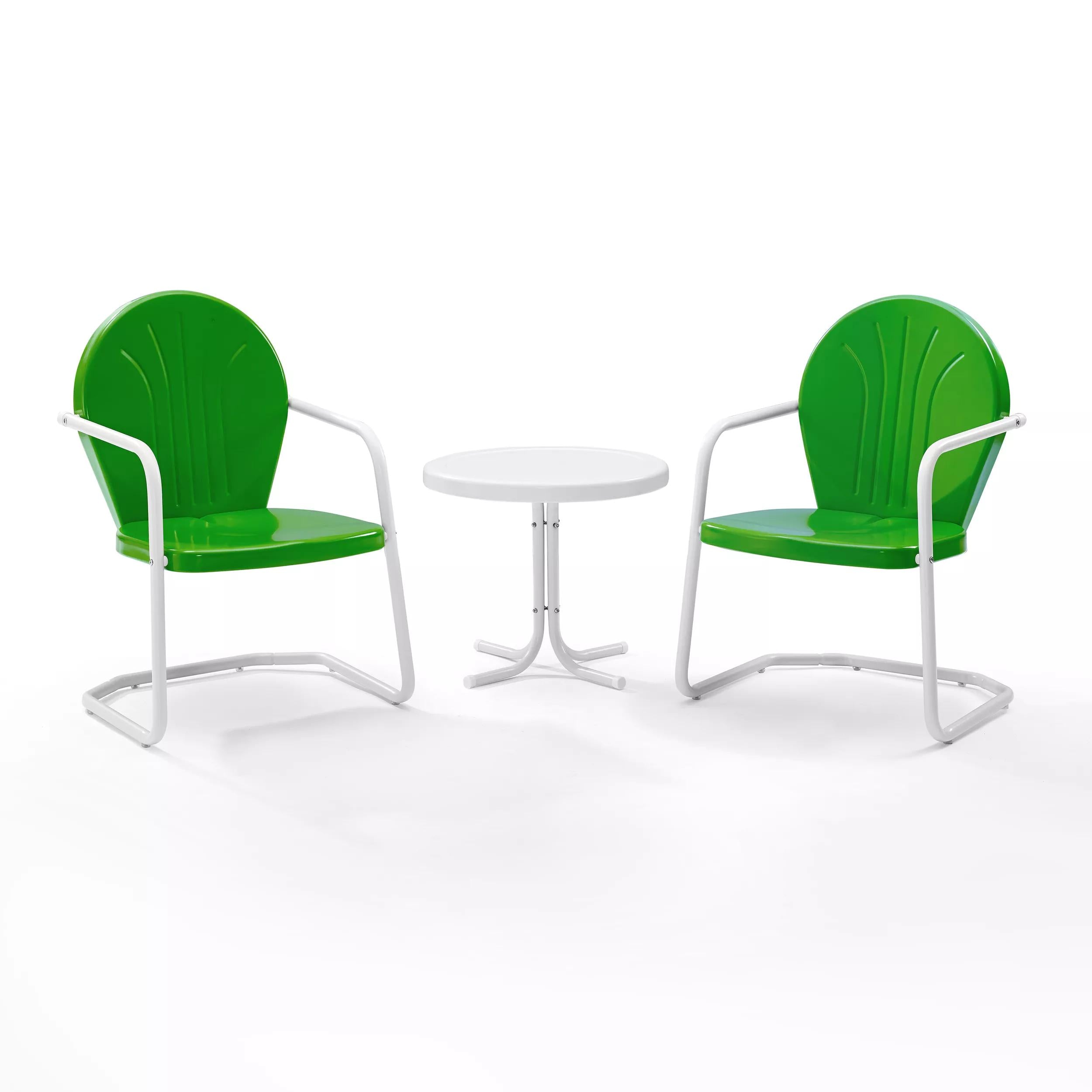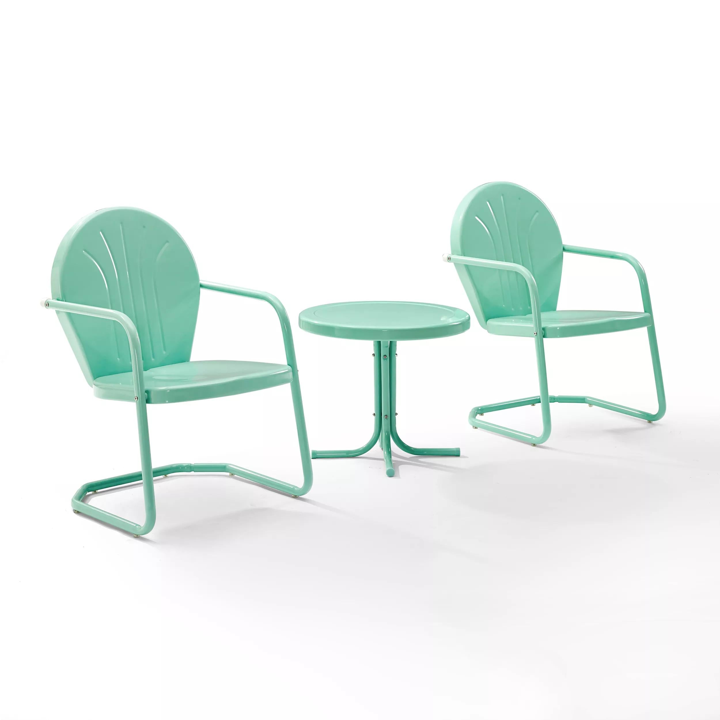 Relax outside for hours with this nostalgically inspired Griffith Outdoor Furniture Set. The furniture’s durable, powder-coated finish is available in various colors to complement your outdoor accessories and is designed to withstand the hottest of summer days and other harsh conditions. Set includes two chairs and one table.