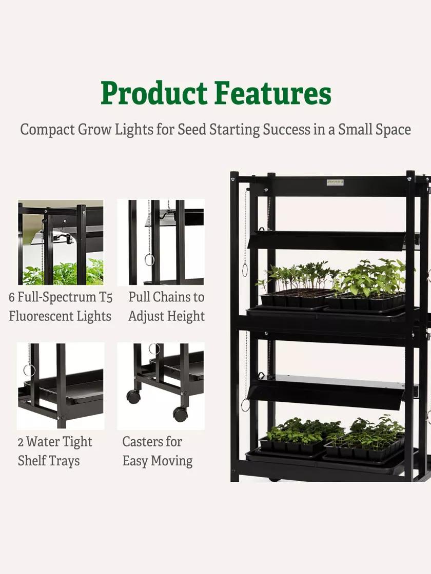 - Compact, two-tier light system is ideal for starting seeds in a small space