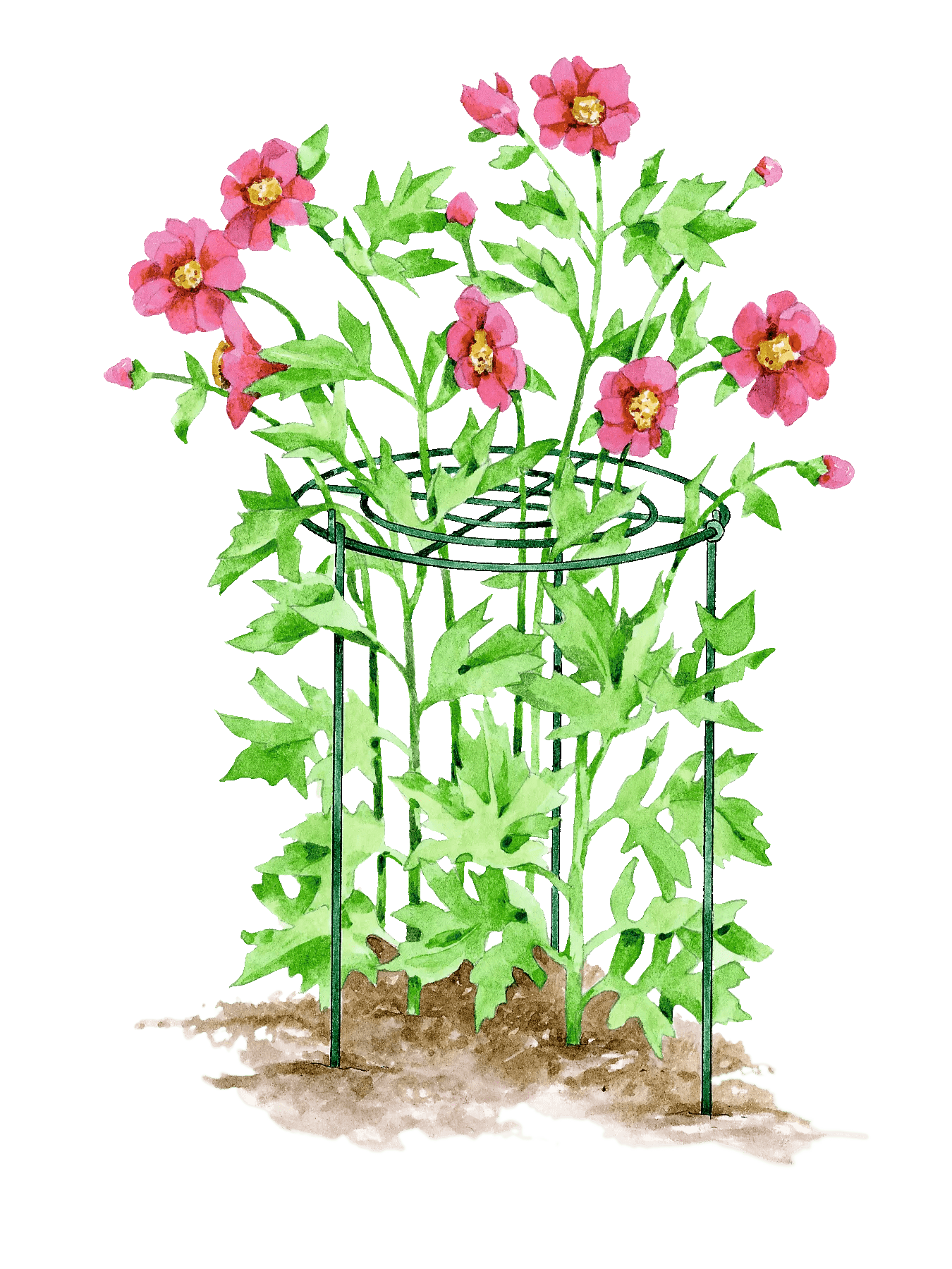 - 18" support is perfect for shrubby flowers like taller zinnias, salvia, young peonies, Shasta daisies and poppies