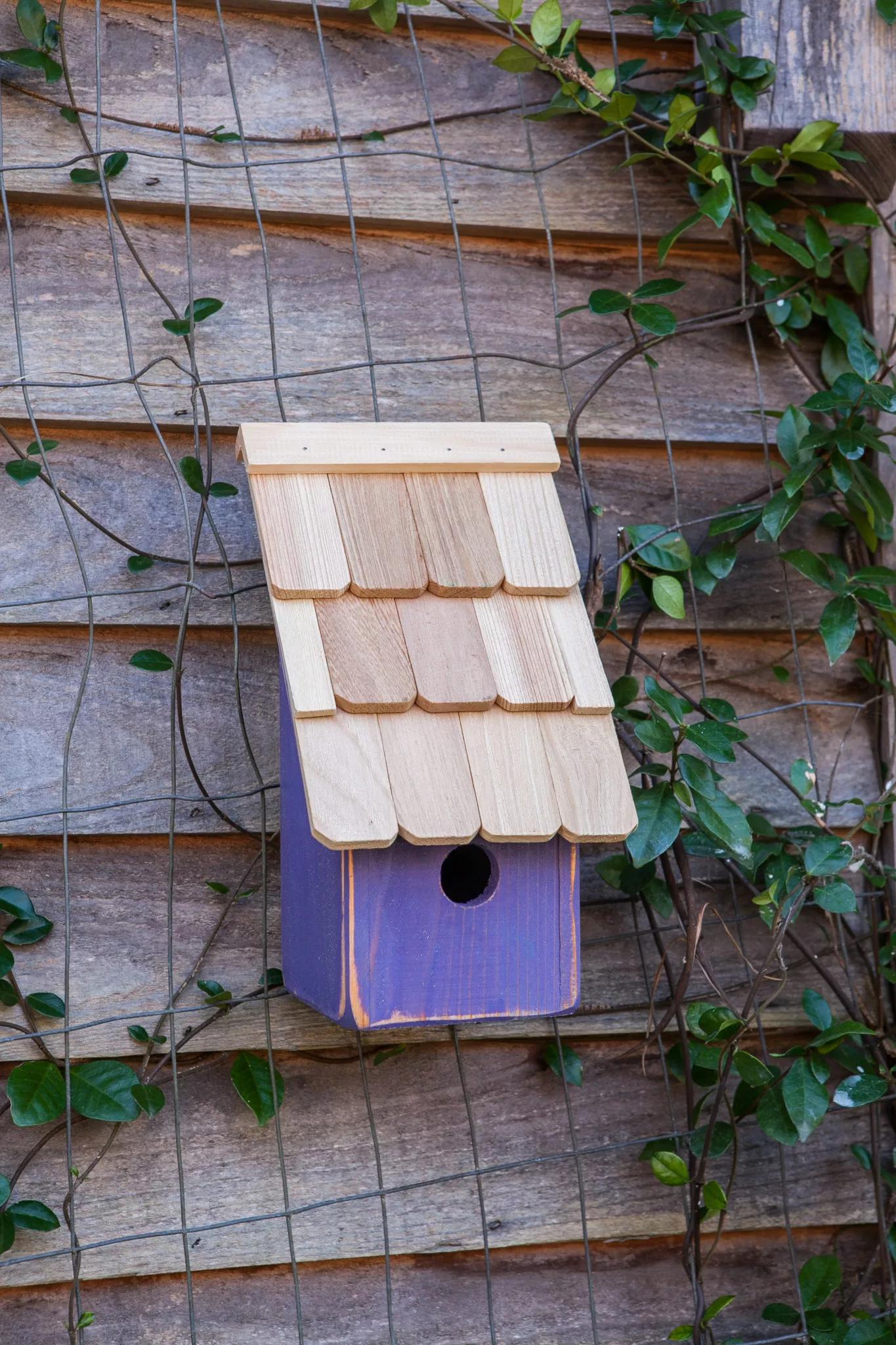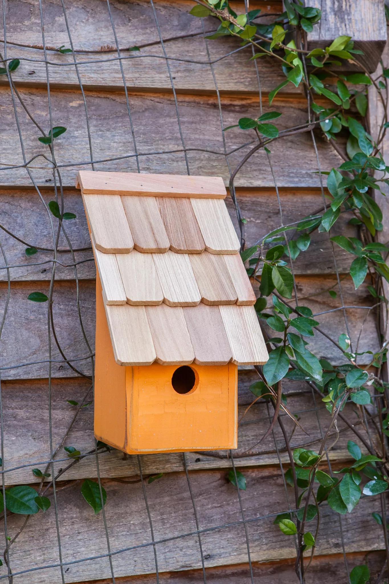 The sweetest little songbirds in the world deserve nothing less than the sweetest little bird houses in the world. These small wren fruit coops are an artful gathering of all the best features that attract birds and bird lovers: natural beauty and comfort, plus durable cypress construction in a bountiful harvest of fruit colors. Adorable alone, these little beauties are even better together. So buy them by the bunch and have your yard or garden blooming with color and bursting with song. Proudly hand-crafted by Heartwood in the USA.