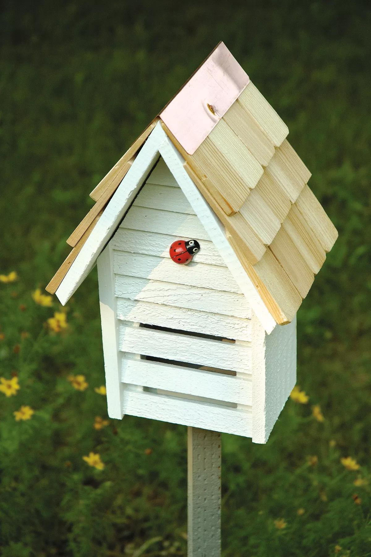 Your garden doesn’t have a better ally than the lady bug. The demure little creature is a tiger when it comes to dealing with aphids and mealybugs. Why not pamper her with a home where no detail is too small to overlook – from the classic weathered finish all the way to the hand-shingled roof. Made from durable cypress wood, this Ladybug Loft will provide shelter for years. Proudly hand-crafted by Heartwood in the USA.