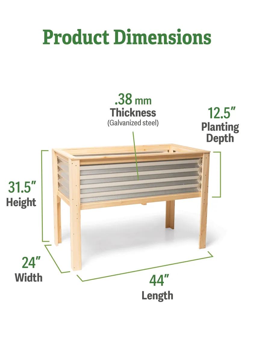 Our Hudson Elevated Garden Bed instantly adds character and growing space to a yard, deck, patio, or balcony—at an affordable price point to boot. Weather-resistant fir, reinforced corners, and sturdy .38 mm galvanized steel sides ensure Hudson will maintain its shape and look good doing it for years to come. The bed's bottom boards promote optimal drainage. Hudson is available as a 2’ x 4’ on-ground raised bed (8’ growing space; 14.5” H), a 4’ x 4’ on-ground raised bed (16’ growing space; 14.5” H), or this 2’ x 4’ elevated bed (8’ growing space; 31.5” H). Grow your own produce, cut flowers, and more!