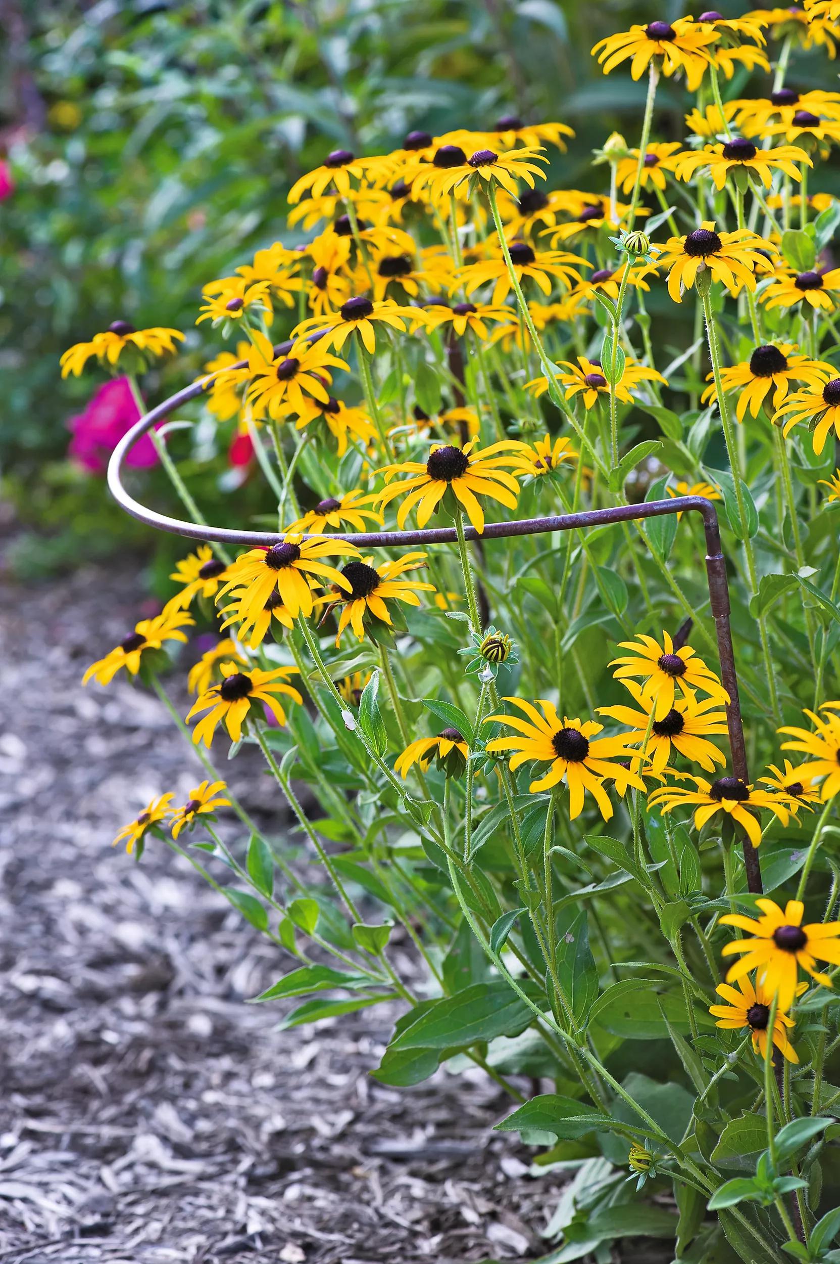 - Simple, elegant supports prop up leaning flowers and keep paths open