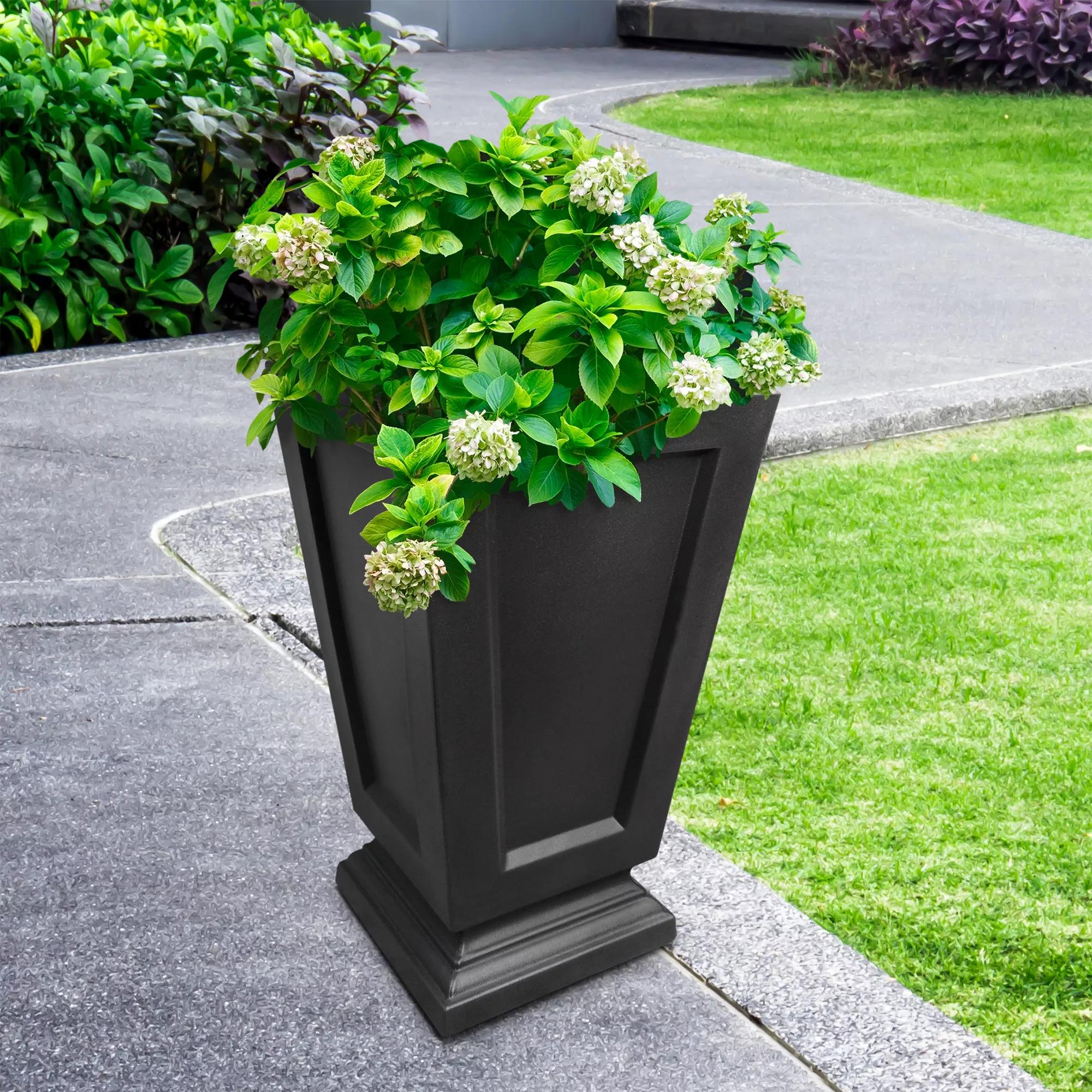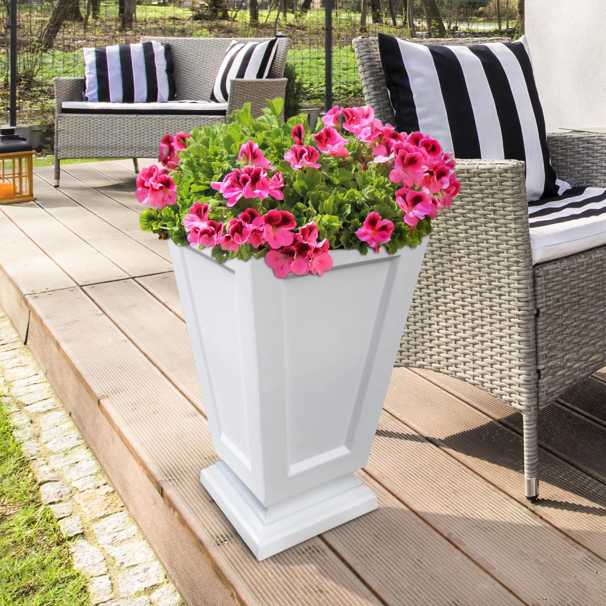 Get the look of fine woodworking in easy-to-maintain planters. High quality, UV-protected polyethylene never needs painting or staining. Built-in water reservoir reduces maintenance chores and keeps moisture consistent for healthy, thriving plants.