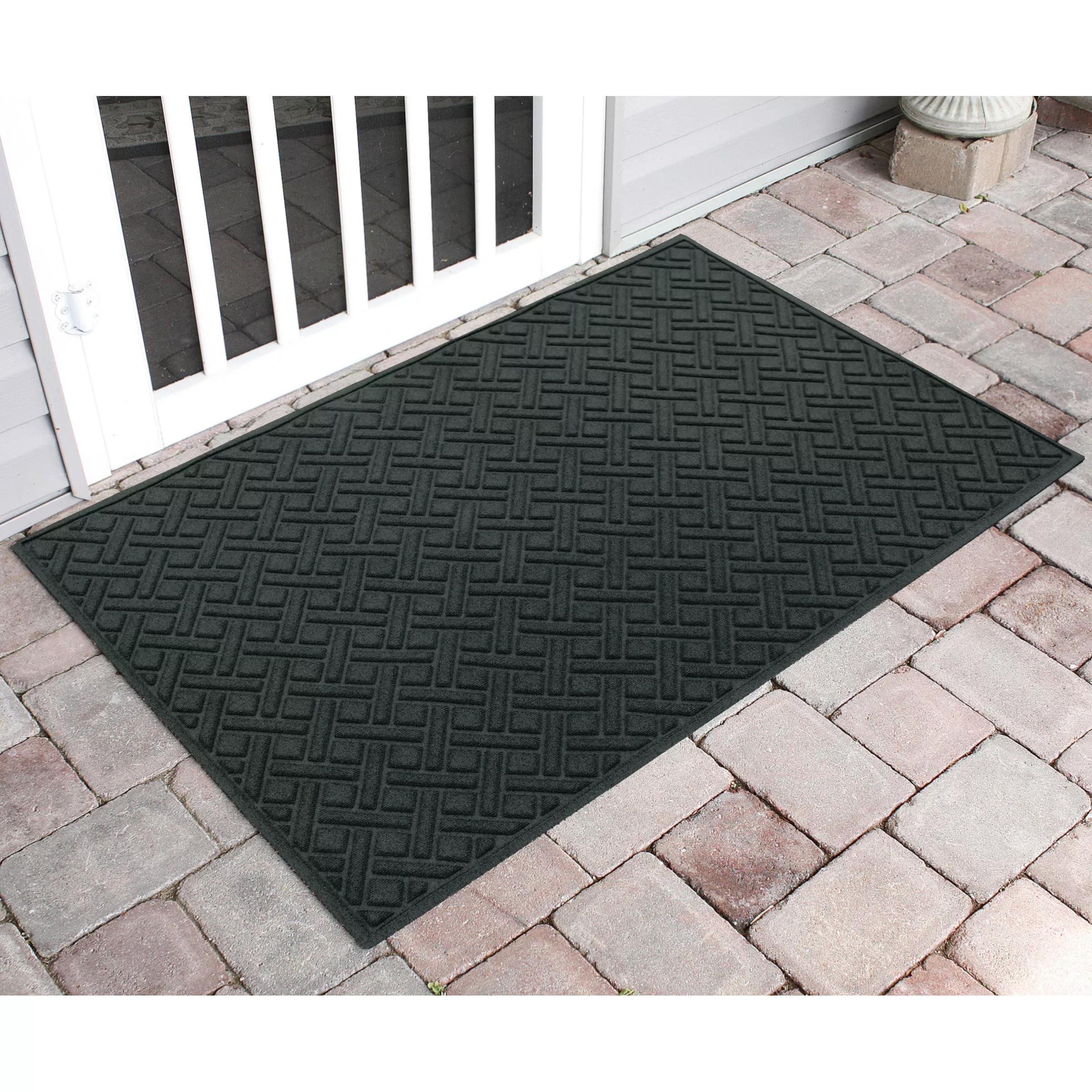 This handsome, durable WaterHog doormat welcomes visitors in style — and keeps them from making a mess of your pristine floors! The raised lattice design scrapes boots clean, while the “water dam” edge keeps up to 1 gallon of moisture, mud, and grit neatly contained. Made of durable, anti-static recycled polyester that dries quickly, resists mold and mildew, and won't fade or rot. A recycled rubber backing with non-slip grippers keeps your mat securely in place. Low profile for easy door clearance. Just vacuum clean when dry, or hose off and air dry for deep cleaning.