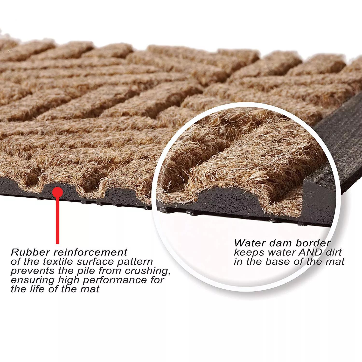 - Absorbent indoor/outdoor floor mat traps water and dirt