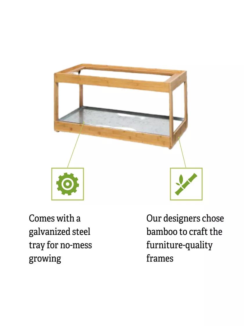 Our furniture-quality Bamboo grow light gardens have high-output LEDs & high-fashion looks! The perfect size for low-growing herbs, houseplants, and succulents, this grow light is also an excellent choice for seed-starting and propagation. The premium high-output bulbs are twice as bright as standard LEDs, and use only half the energy of fluorescents. Under the two 3960-lumen grow lamps, your seedlings will grow fuller, thicker, and stronger. There's no need to adjust lamp height as plants grow — these lights satisfy a plant’s light needs from a single distance.