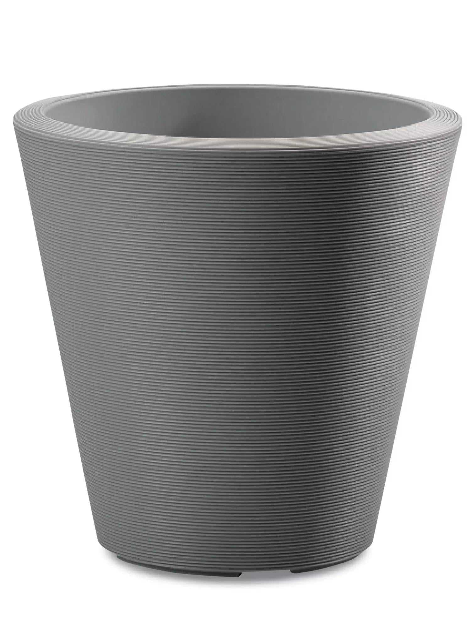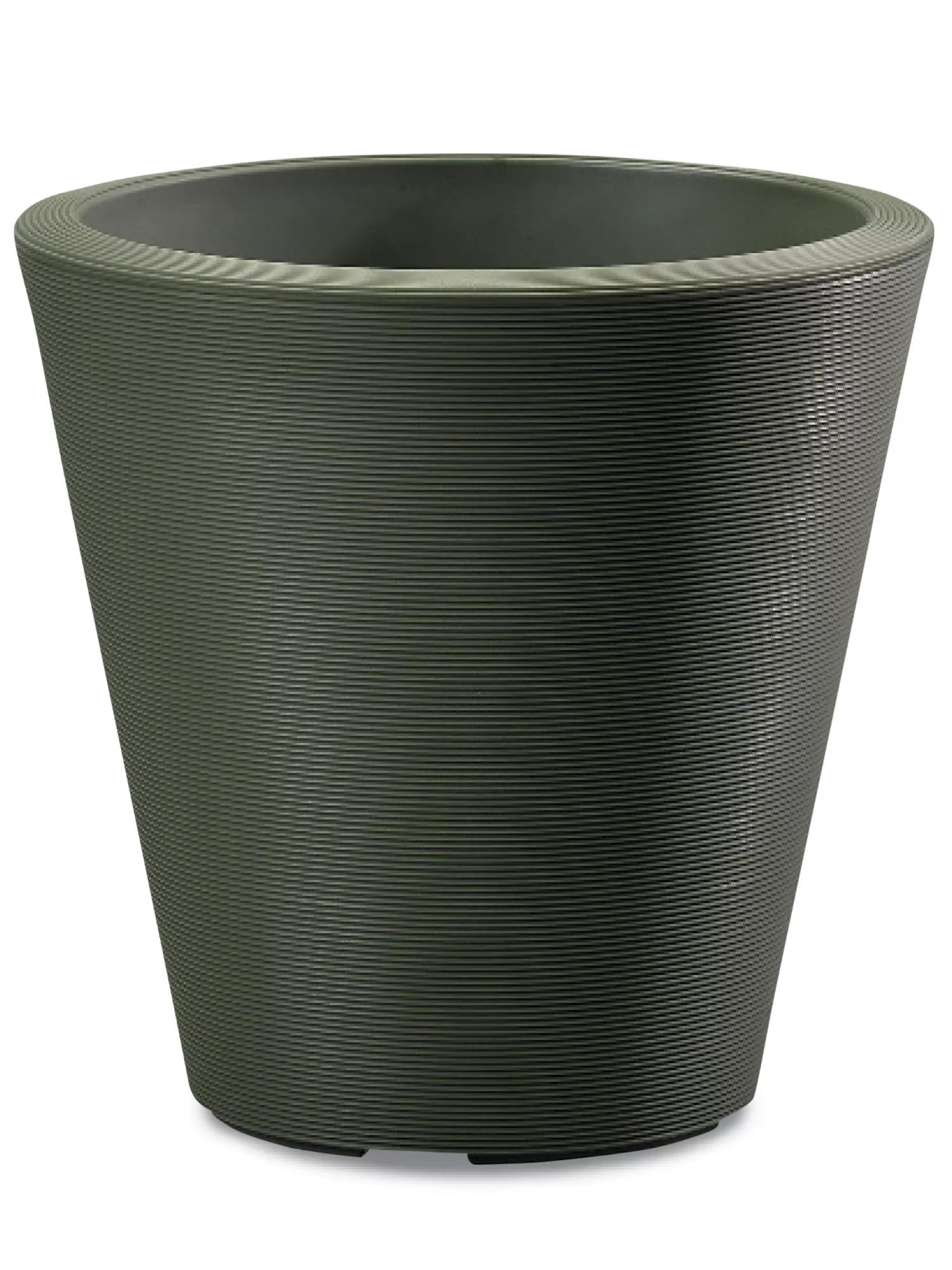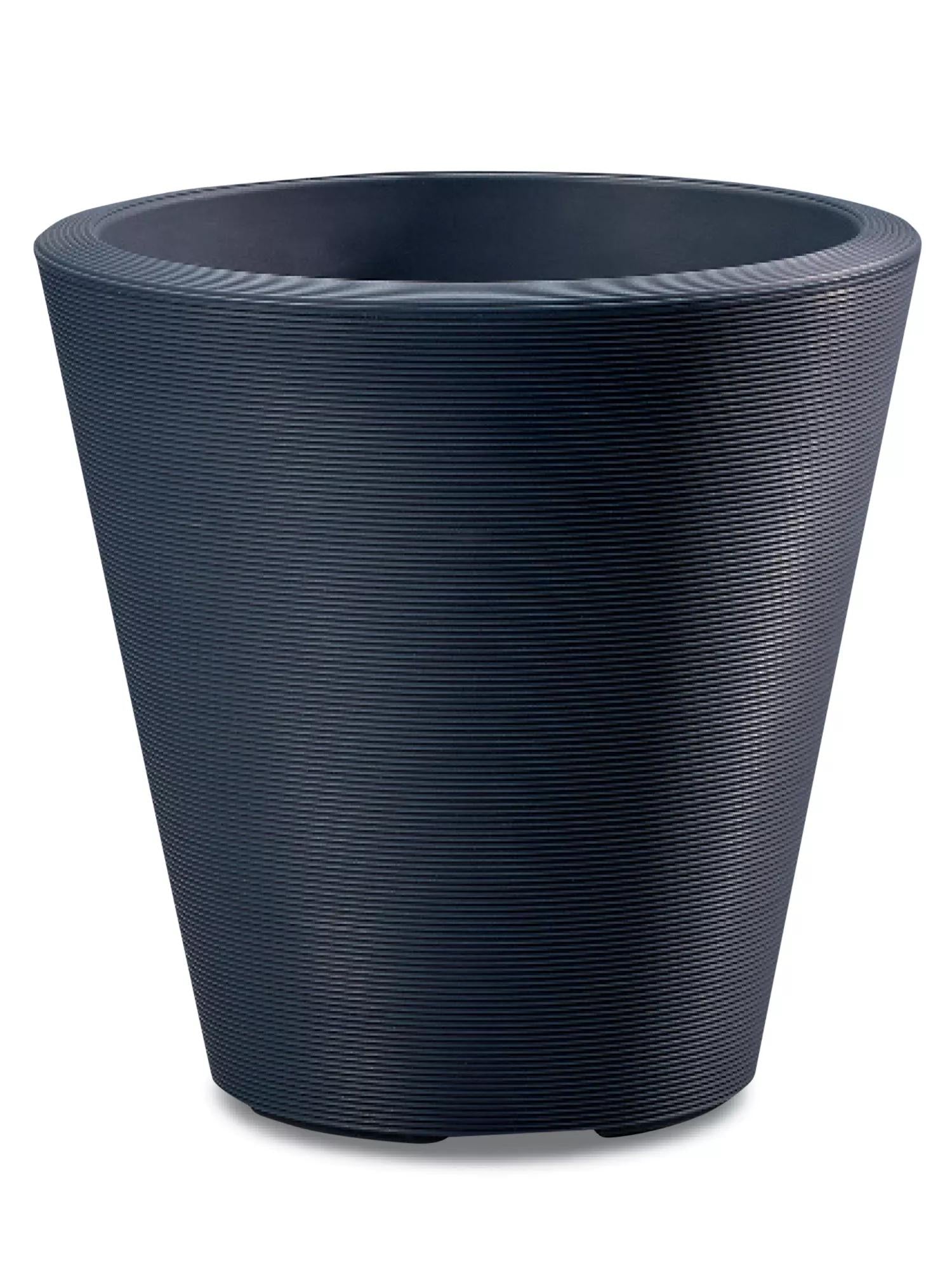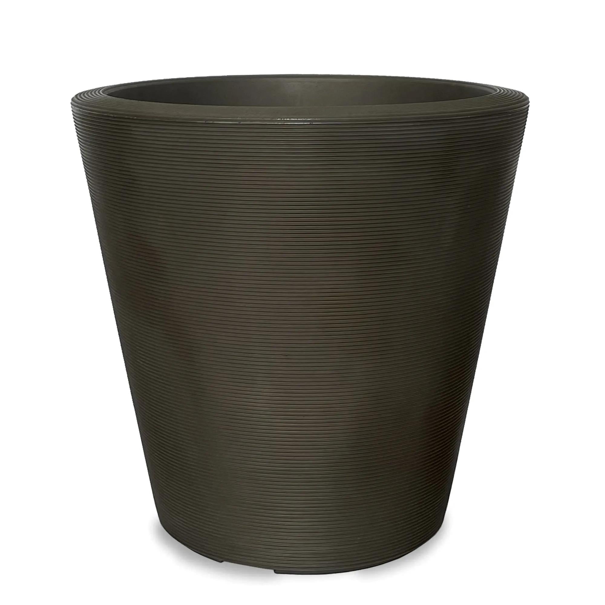 Our handsome Madison planters resemble handmade pottery, but they're made from high-density polyethylene so they're much lighter and more rugged. The clean lines and tapered shape bring a modern aesthetic, but they're also at home in more traditional settings. When viewed up close, the surface texture adds interest without detracting from plants. Madison planters are a natural for flowers, herbs and vegetables; the larger planters also accommodate shrubs and small trees. Use them to frame your entryway, grow your favorite culinary herbs or perk up your patio. Madison planters are available in multiple sizes and colors, allowing you to create dramatic groupings. By repeating a single style of planter, your artistic arrangement will have a unified look. These durable planters are made from UV-resistant polyethylene and will easily withstand both high and low outdoor temperatures. Pre-drilled holes in the bottom ensure proper drainage. If displaying indoors, use a saucer (sold separately) to protect surfaces from water damage.