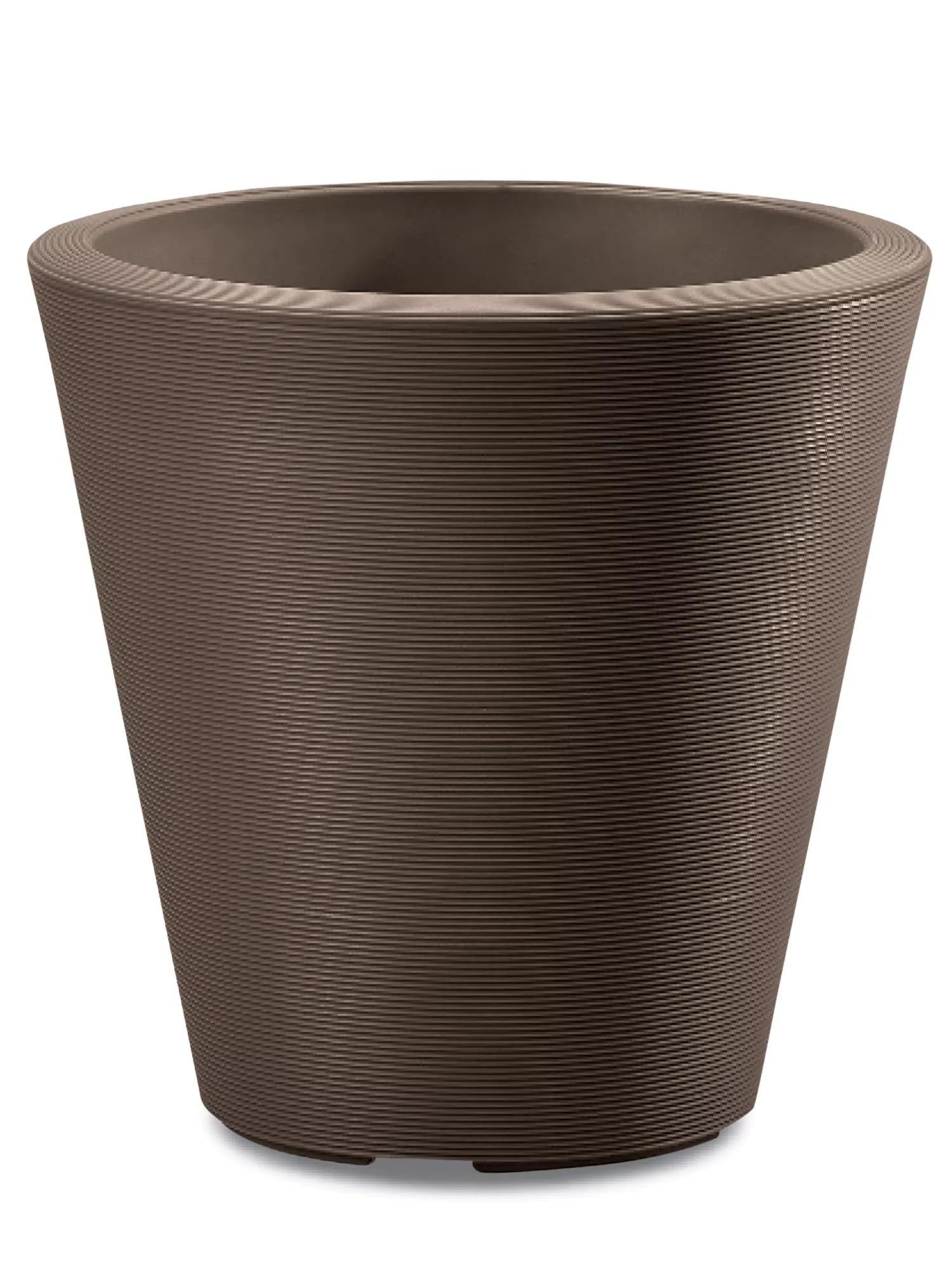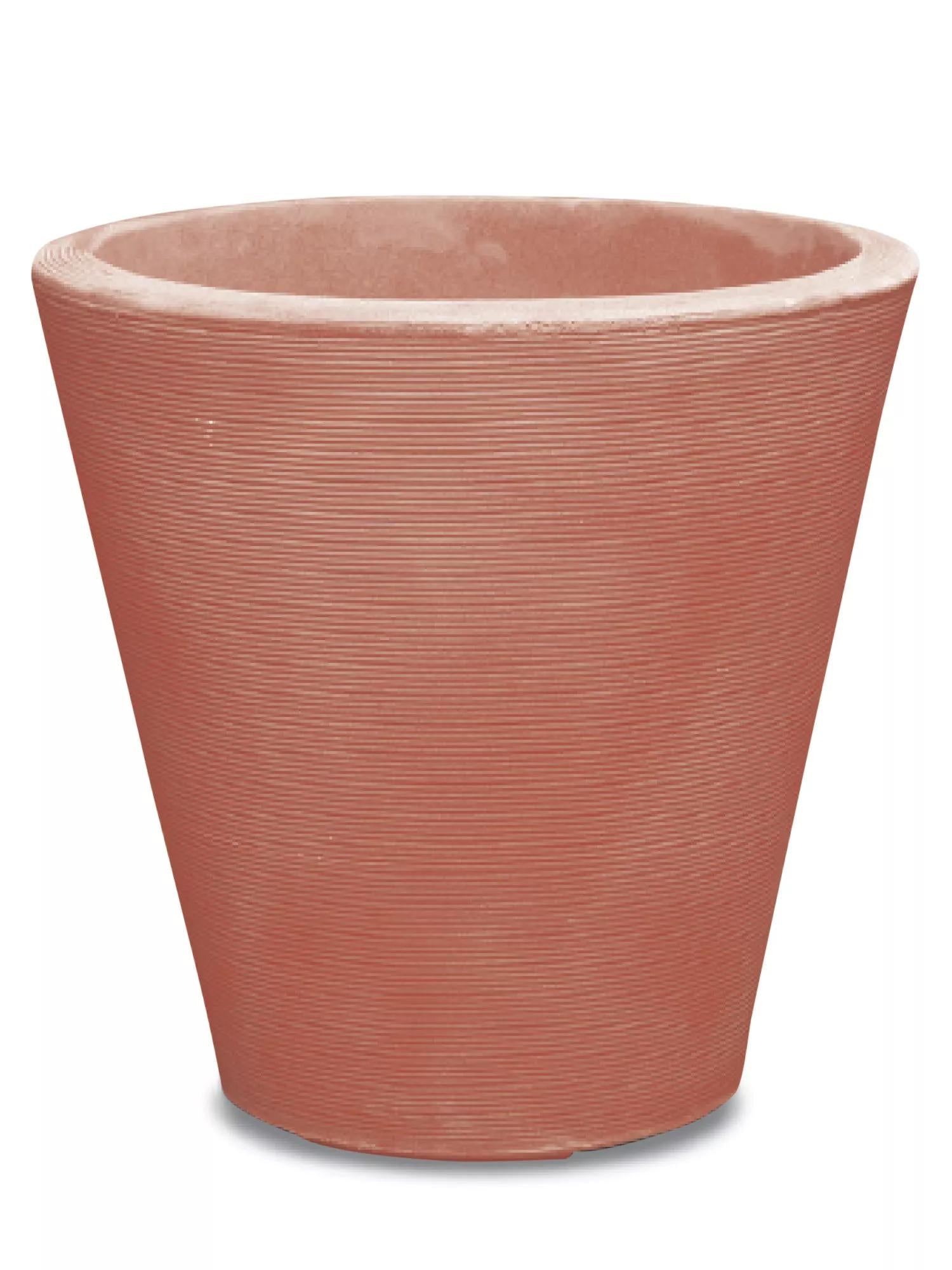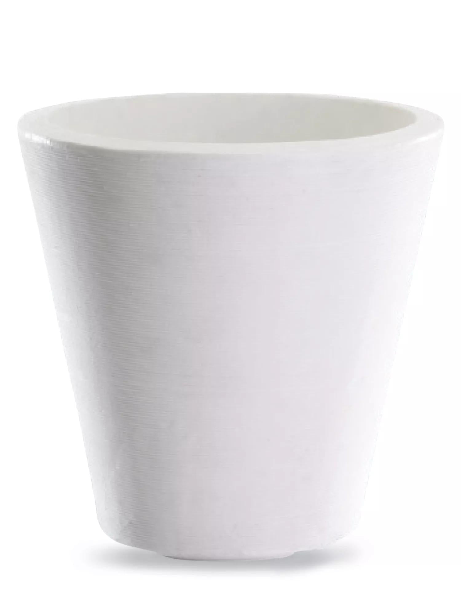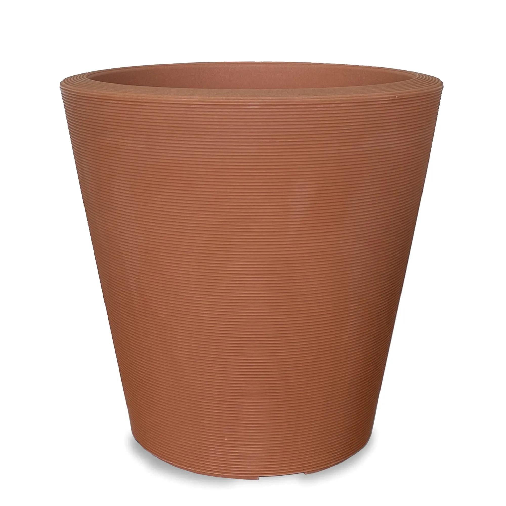 Our handsome Madison planters resemble handmade pottery, but they're made from high-density polyethylene so they're much lighter and more rugged. The clean lines and tapered shape bring a modern aesthetic, but they're also at home in more traditional settings. When viewed up close, the surface texture adds interest without detracting from plants. Madison planters are a natural for flowers, herbs and vegetables; the larger planters also accommodate shrubs and small trees. Use them to frame your entryway, grow your favorite culinary herbs or perk up your patio. Madison planters are available in multiple sizes and colors, allowing you to create dramatic groupings. By repeating a single style of planter, your artistic arrangement will have a unified look. These durable planters are made from UV-resistant polyethylene and will easily withstand both high and low outdoor temperatures. Pre-drilled holes in the bottom ensure proper drainage. If displaying indoors, use a saucer (sold separately) to protect surfaces from water damage.