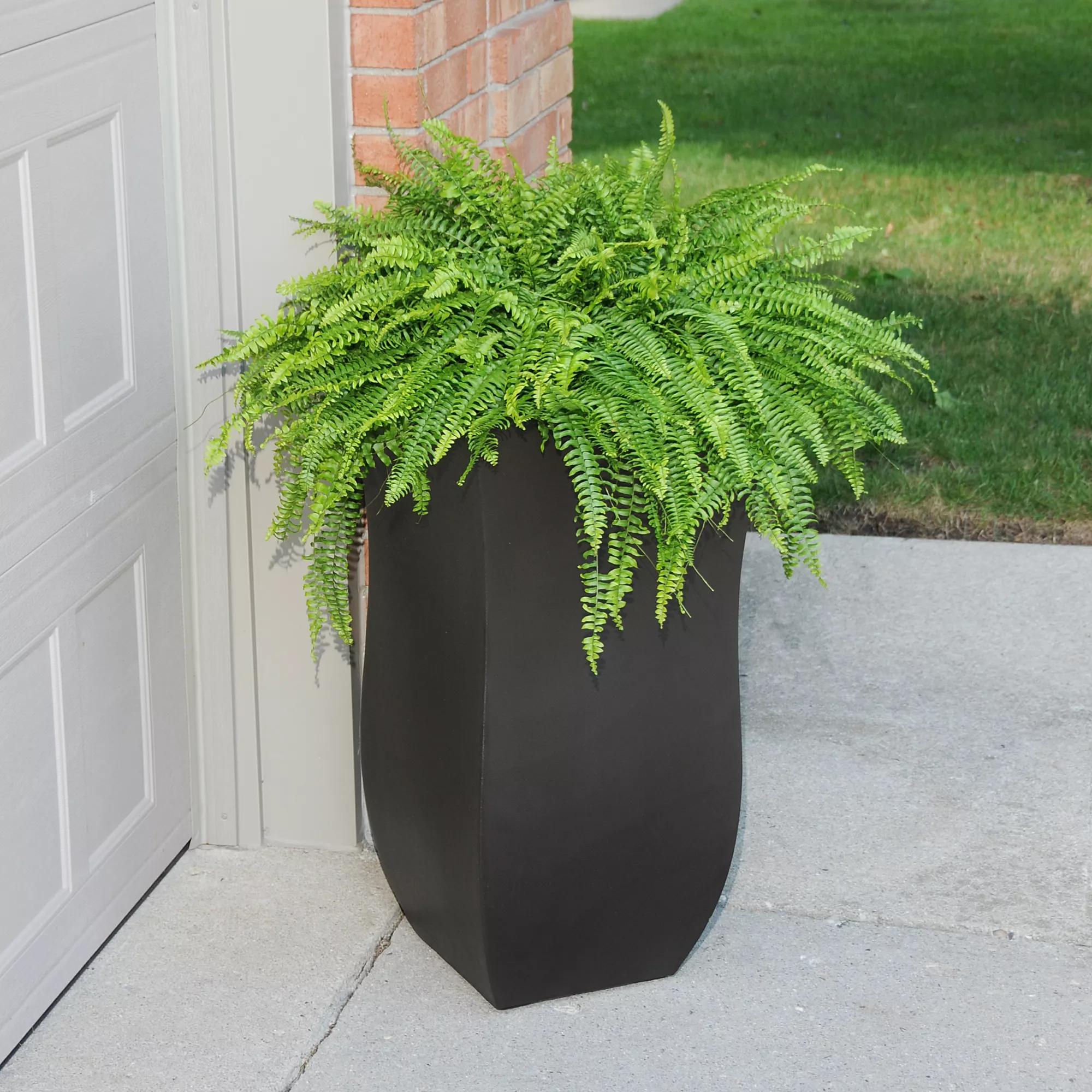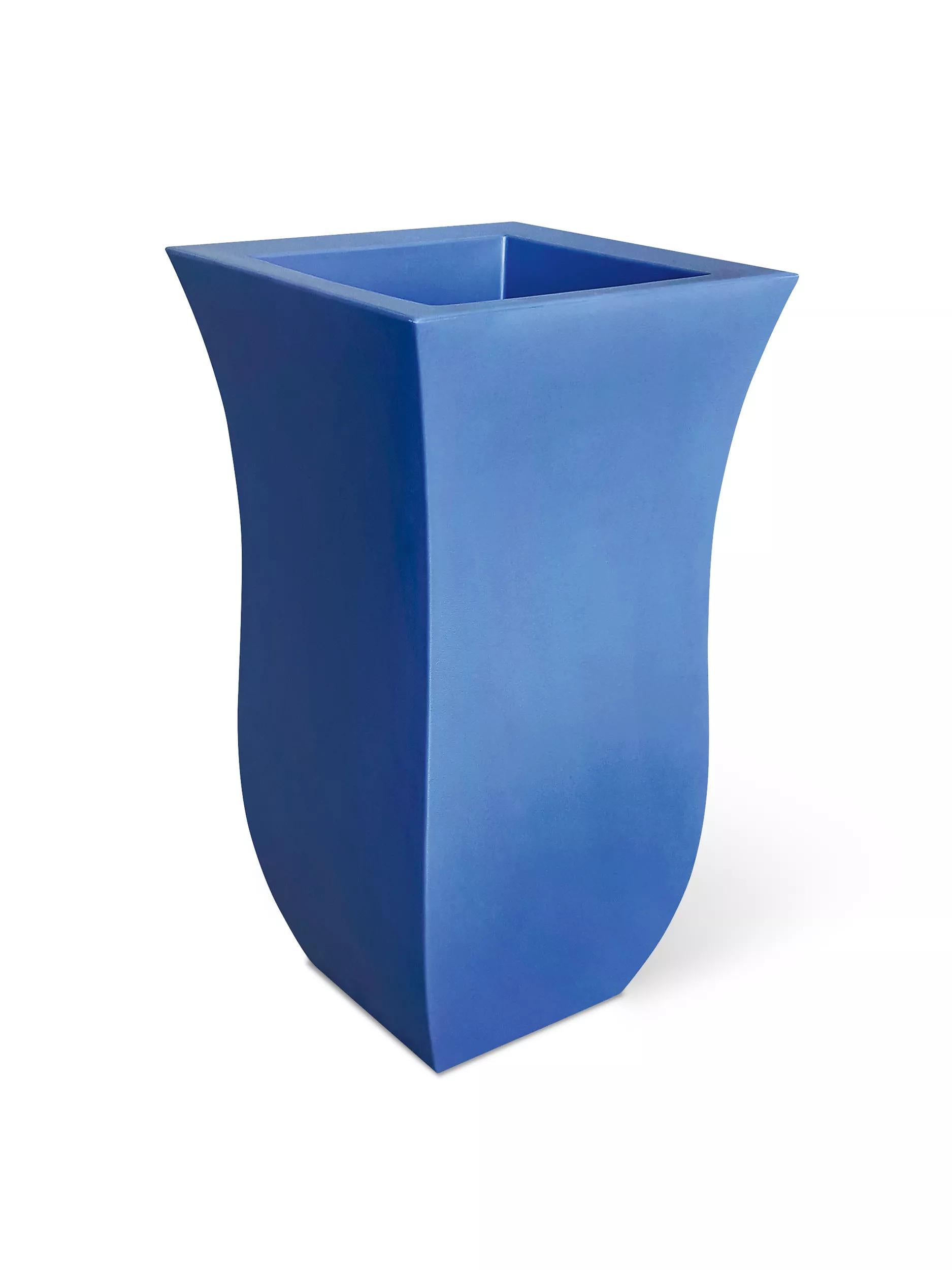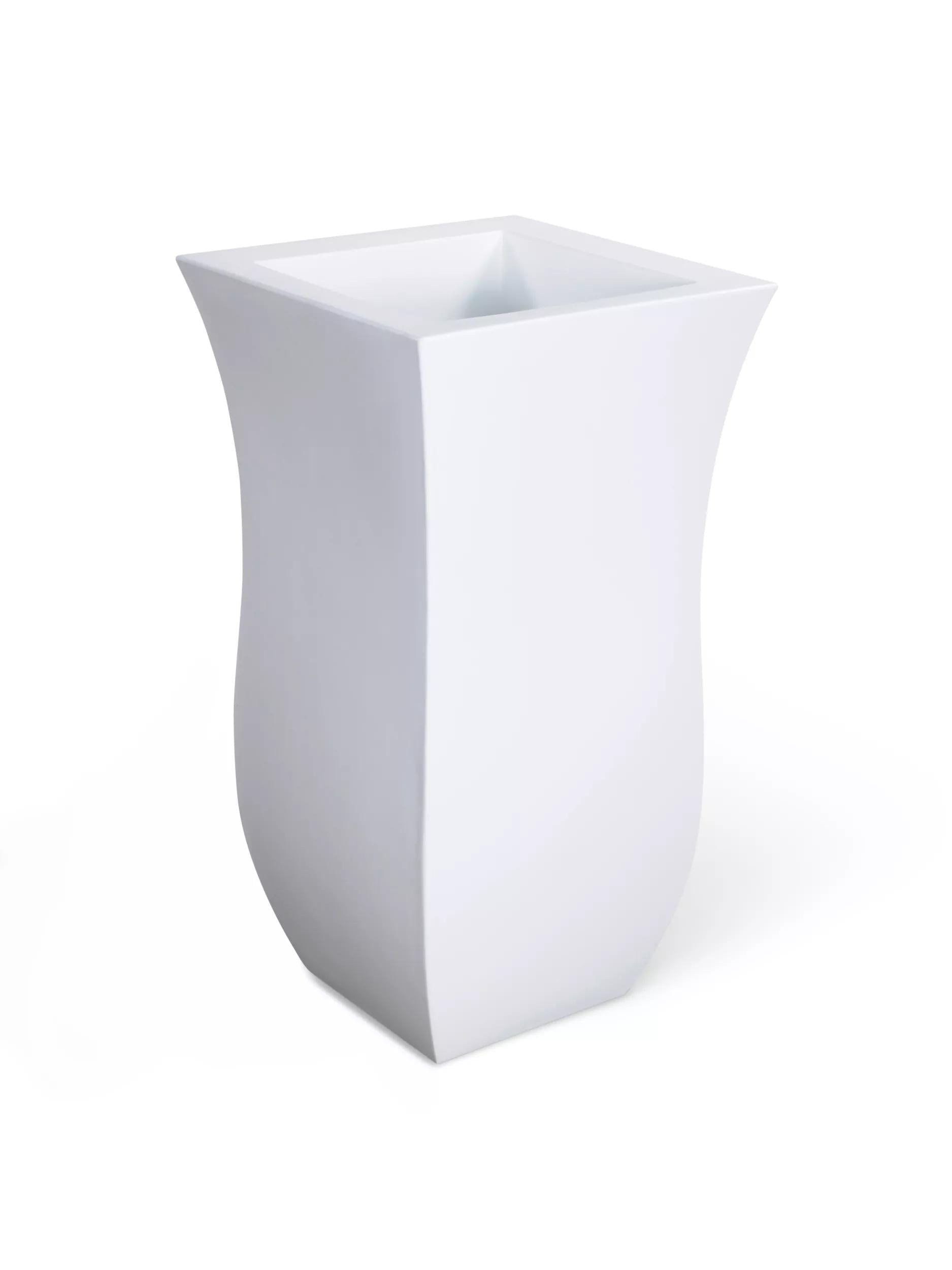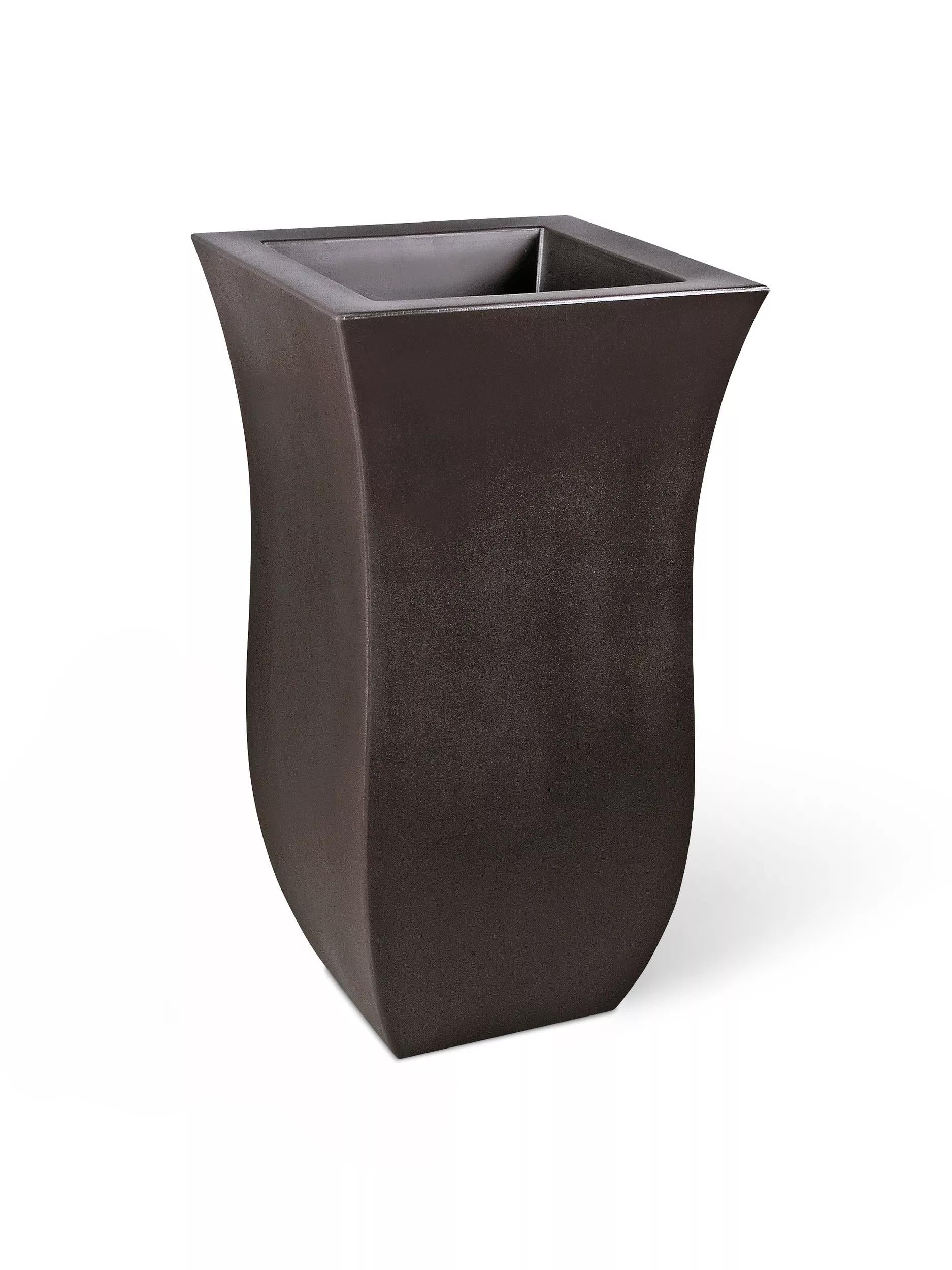 The height of this sleek planter creates a perfect base for potted trees, palms and tall grasses. Create a stunning display in a narrow area with minimal effort. Graceful curves add style, and a UV filter right in the durable resin prevents the color of this pot from fading. Polyethylene is light and handles whatever the weather throws at it. Use alone as a statement piece, or coordinate with other styles in the Valencia line for a cohesive look. Double-wall construction with false bottom — can be drilled for drainage.