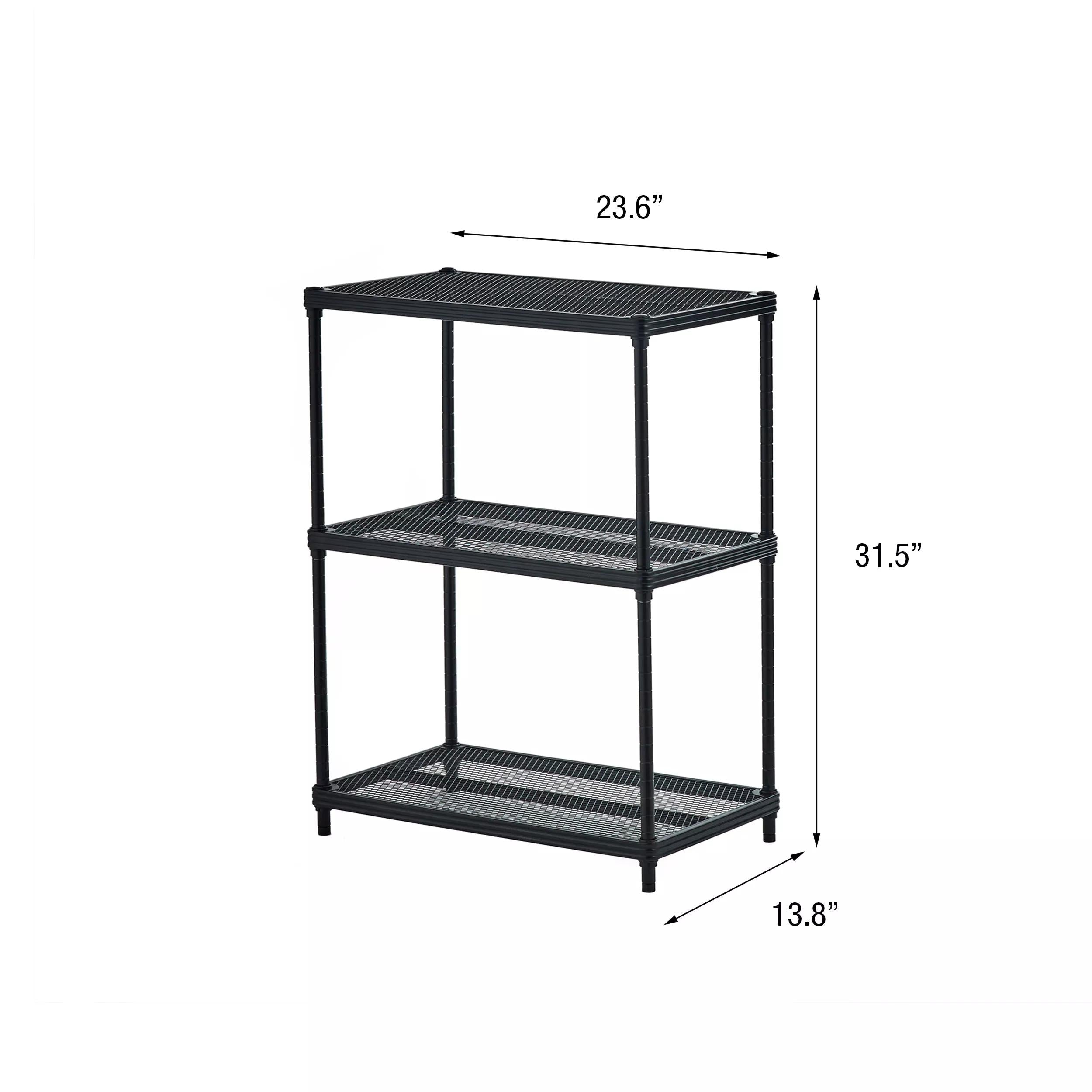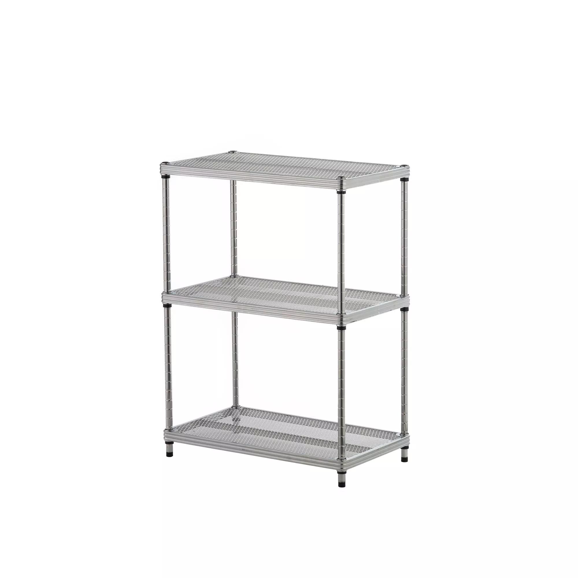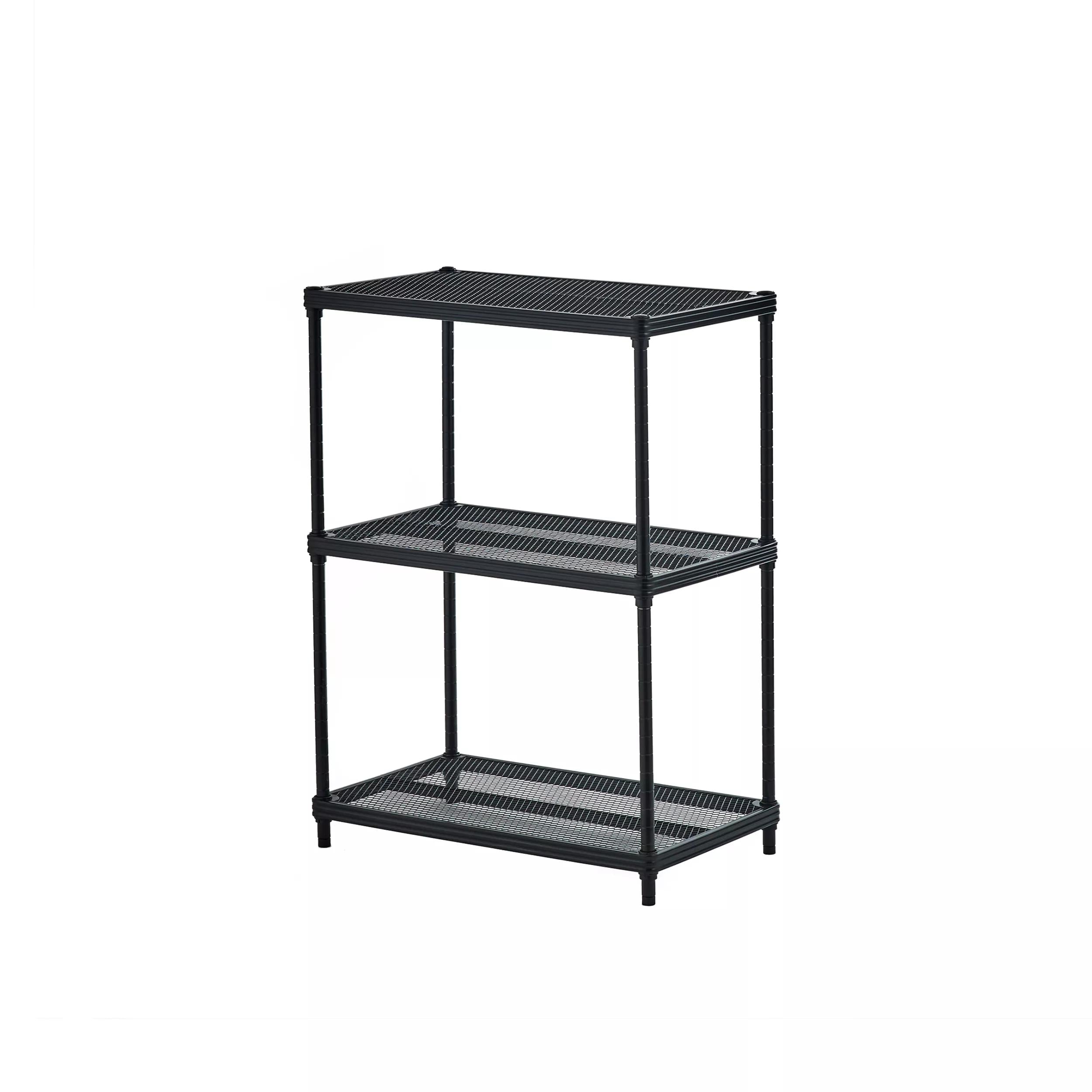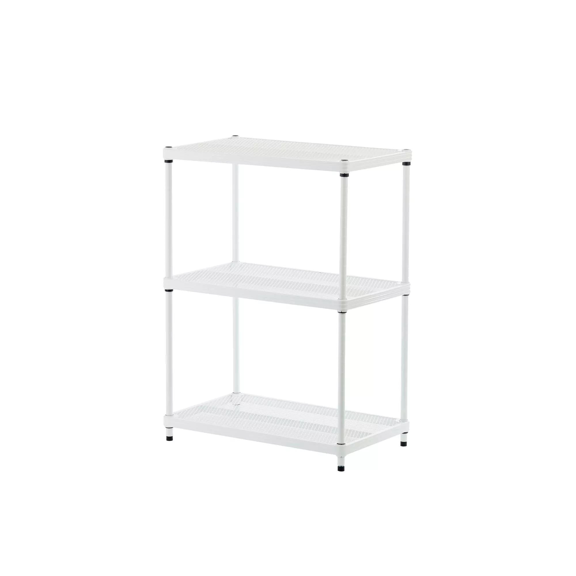 Traditional wire shelves can cause a headache as items can fall through the wide gaps on the shelves. Our brilliantly engineered mesh shelving units use a larger gauge of expanded metal mesh for style, strength and functionality. Each shelf has a weight limit of 440 pounds to safely hold everything from small knick knacks to large, heavy bins. This 3-tier shelving unit is sized perfectly for smaller spaces.