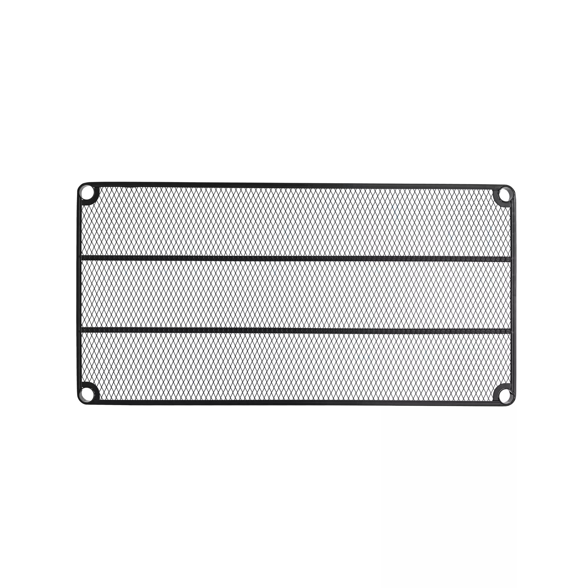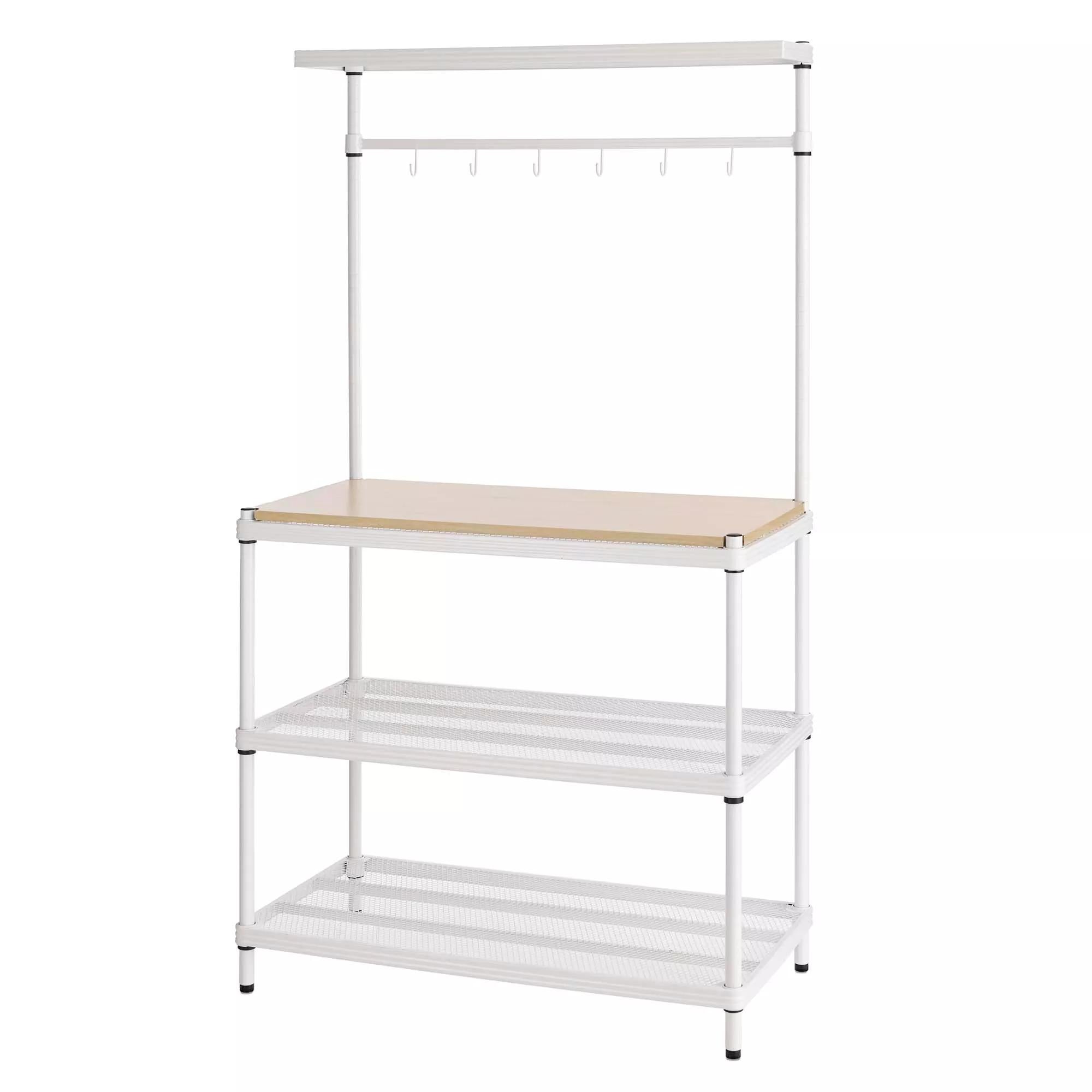 Traditional wire shelves can cause a headache as items can fall through the wide gaps on the shelves. Our brilliantly engineered mesh shelving units use a larger gauge of expanded metal mesh for style, strength and functionality. Each shelf has a weight limit of 440 pounds to safely hold everything from small knick knacks to large, heavy bins. The utility unit includes 4 adjustable shelves, a hook rack with 6 hooks, and a removable wood top work surface. Use in your prep area, the garage or garden shed to organize tools and potting supplies.