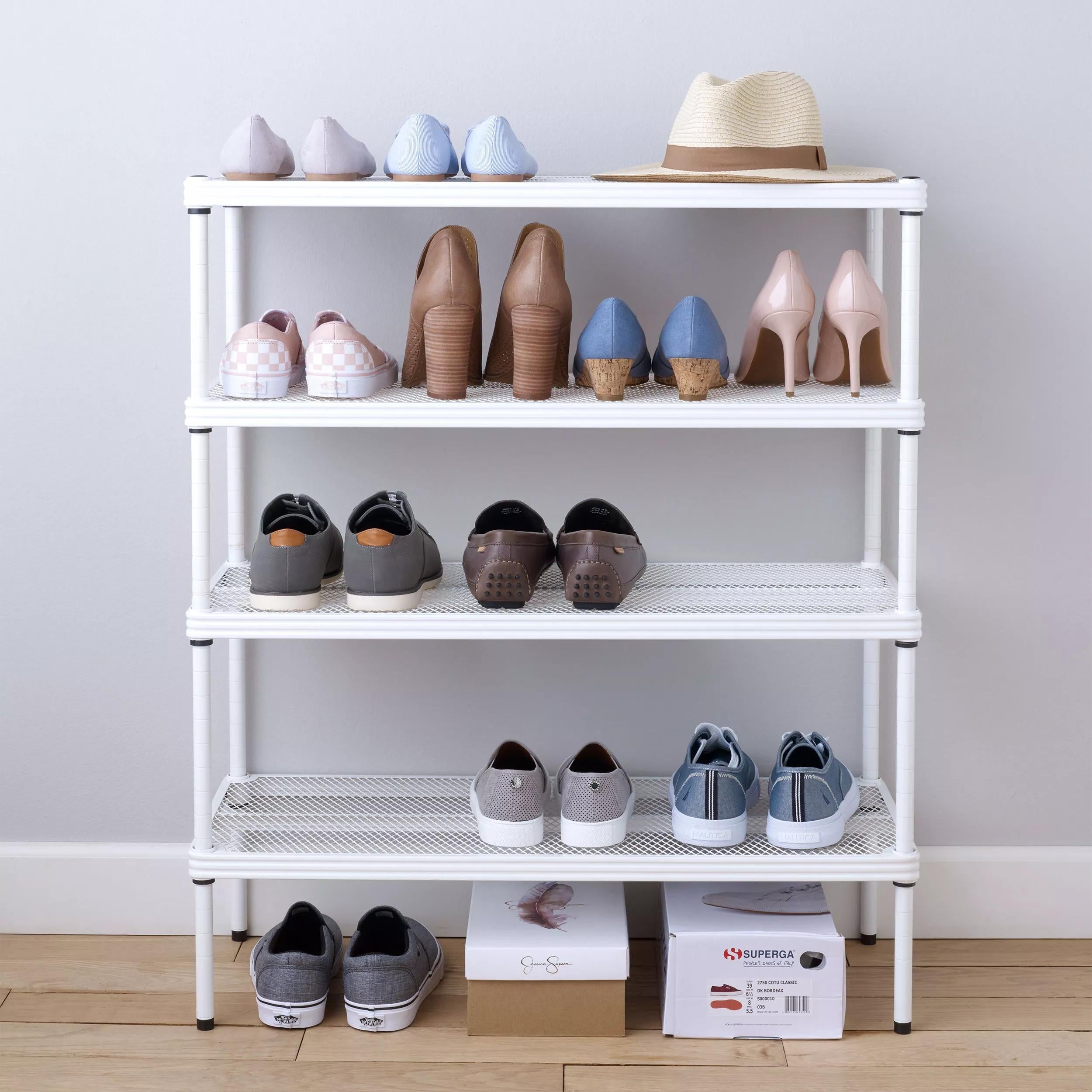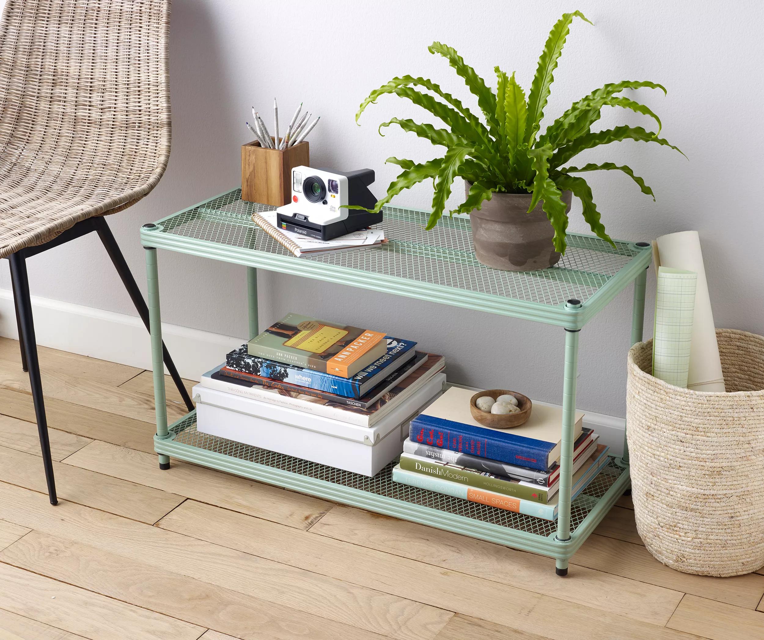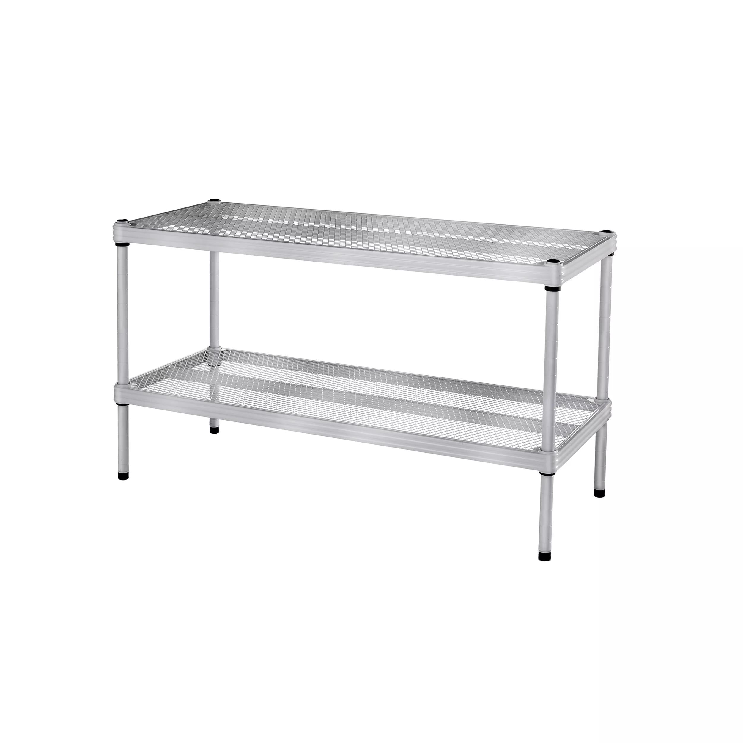 Traditional wire shelves can cause a headache as items can fall through the wide gaps on the shelves. Our brilliantly engineered mesh shelving units use a larger gauge of expanded metal mesh for style, strength and functionality. Each shelf has a weight limit of 440 pounds to safely hold everything from small knick knacks to large, heavy bins. Each MeshWorks® stacking shelf includes 2 adjustable shelves and hardware for stacking multiple units as high as you need.