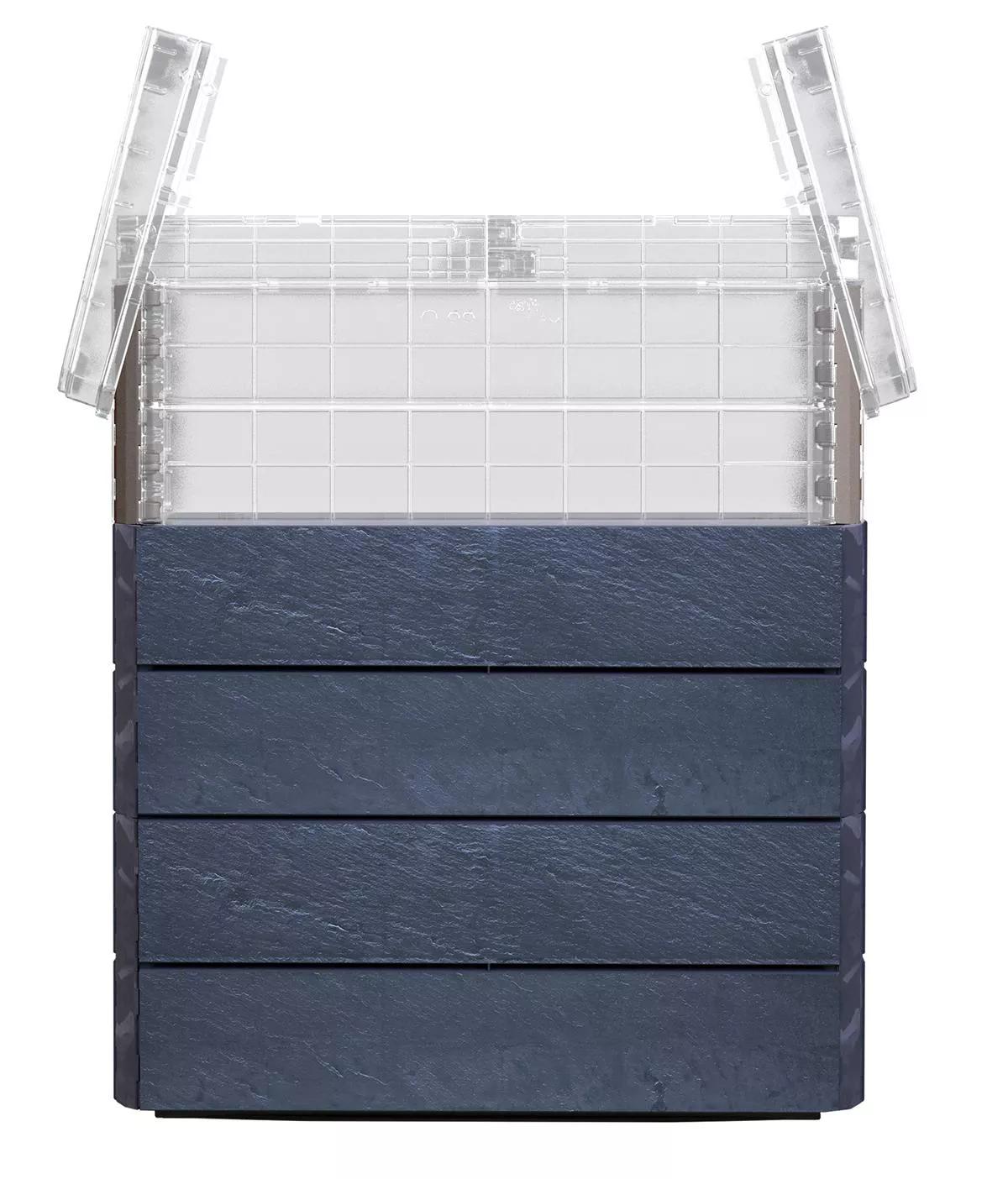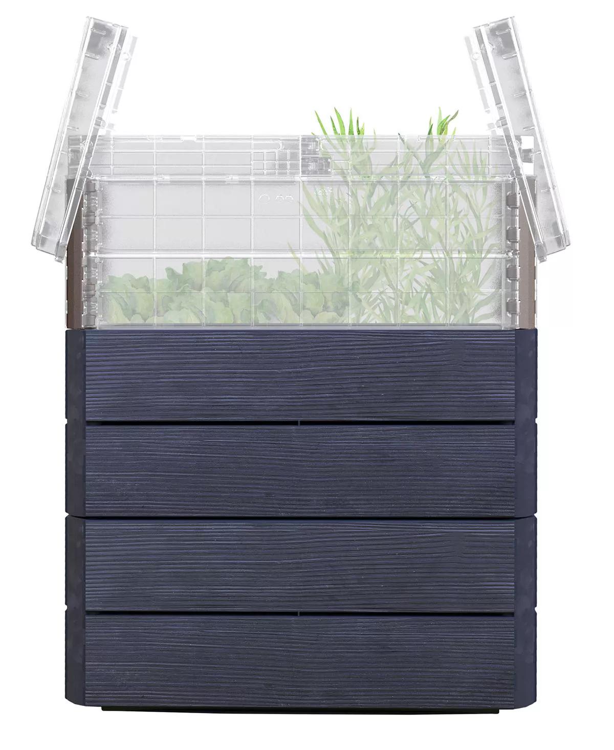 This Modular Rectangular Raised Bed kit consists of twelve opaque and six translucent, 10" high panels and a translucent lid. The sturdy plastic bed has a beautiful wooden texture and is UV- and moisture-resistant. The panels combine to create three rectangles which can be stacked in any configuration; 3 high, 2+1, or 1+1+1.
