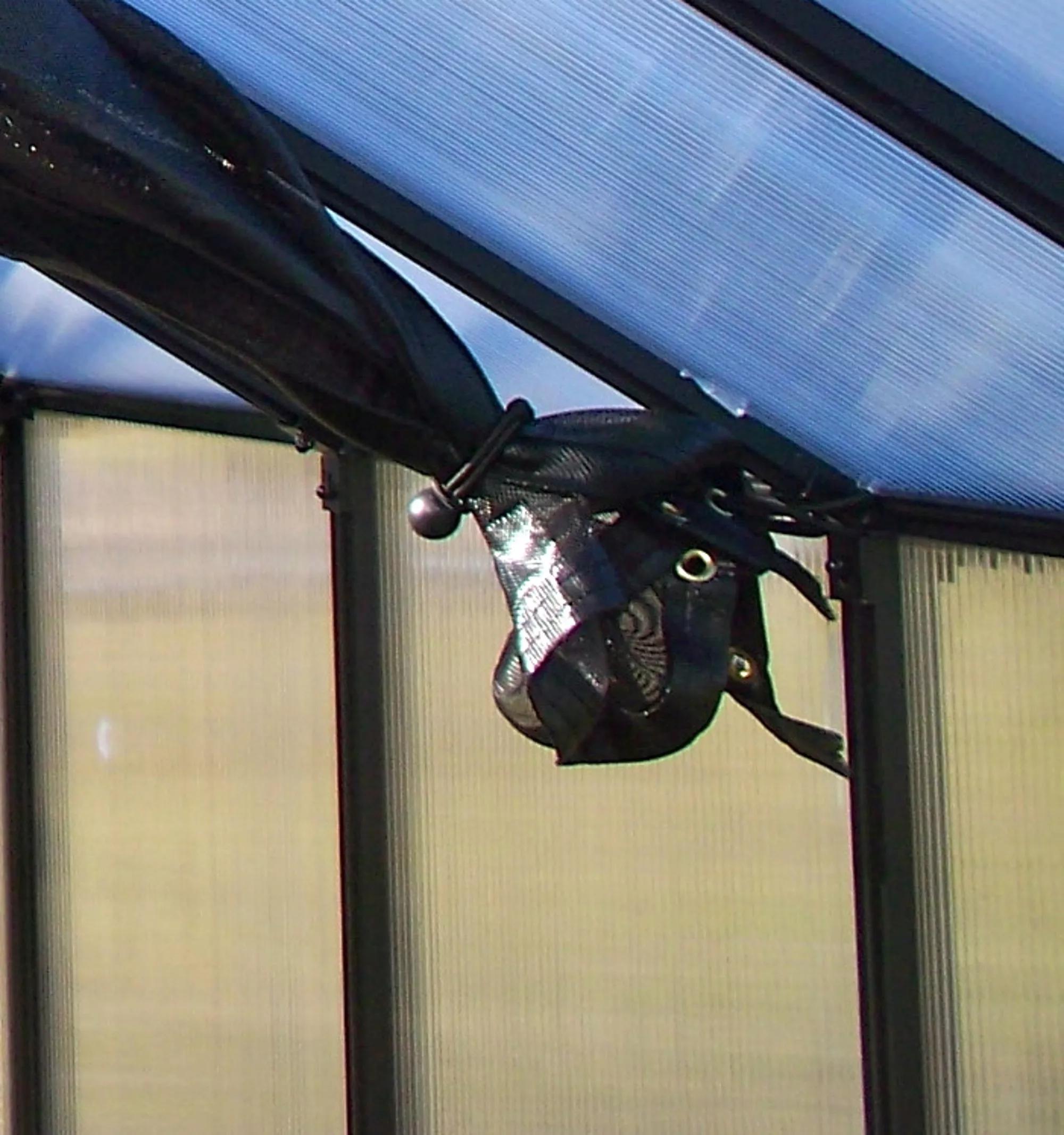 The Monticello 8 foot Shade Cloth Kit is specifically designed for the Monticello line of 8FT greenhouses. The design is simple, unique and thoughtful. Most shade cloths go on the outside of the greenhouse, interfering with roof vent and side window functioning. They are bulky and not easy to set up or take down. The Monticello Shade Cloth kit comes ready to use, no grommet installation needed. The commercial grade shade cloth (rated at 63%) works off a specially designed commercial grade wire system guaranteed to last for 7 years. The shade cloth comes in 4 foot sections so it will work with our Automatic Watering system and since the shade cloth is on the inside, it will not interfere with the Monticello Automatic Vent openers allowing fresh air to flow in and out unimpeded. To operate the Shade Cloth System is as easy as pulling the cloth back to open or pulling tight to the other side to close. Just like our greenhouses, the Monticello Shade Cloth is proudly made in the USA from start to finish.