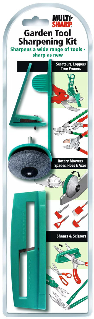 The Multi-Sharp Garden Tool Sharpening Kit contains 3 of the most popular sharpening tools, giving the gardener all they need to accurately sharpen all their tools. Keeps tools in top condition for years, saving money.