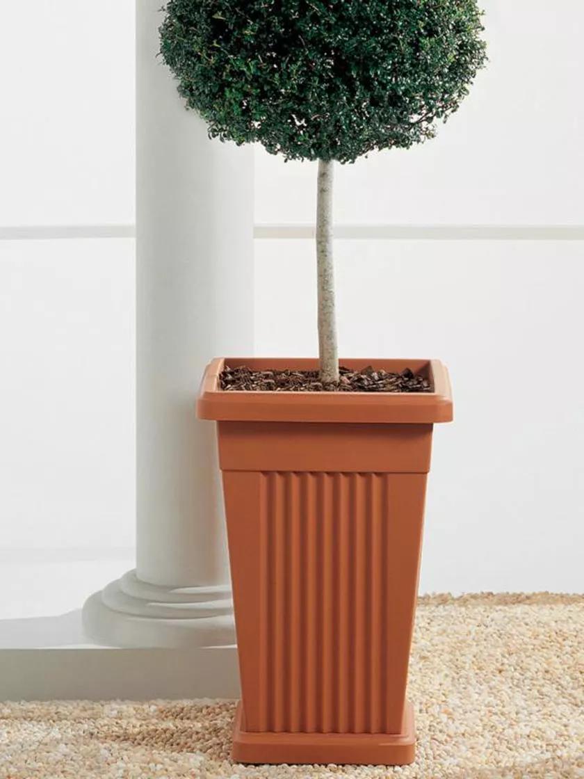 Add class and refinement to any outdoor living space. These large planters can accommodate your favorite flowers and even small shrubs, providing your lawn with fuller blooms and privacy. Includes saucer, made from UV protected resin.